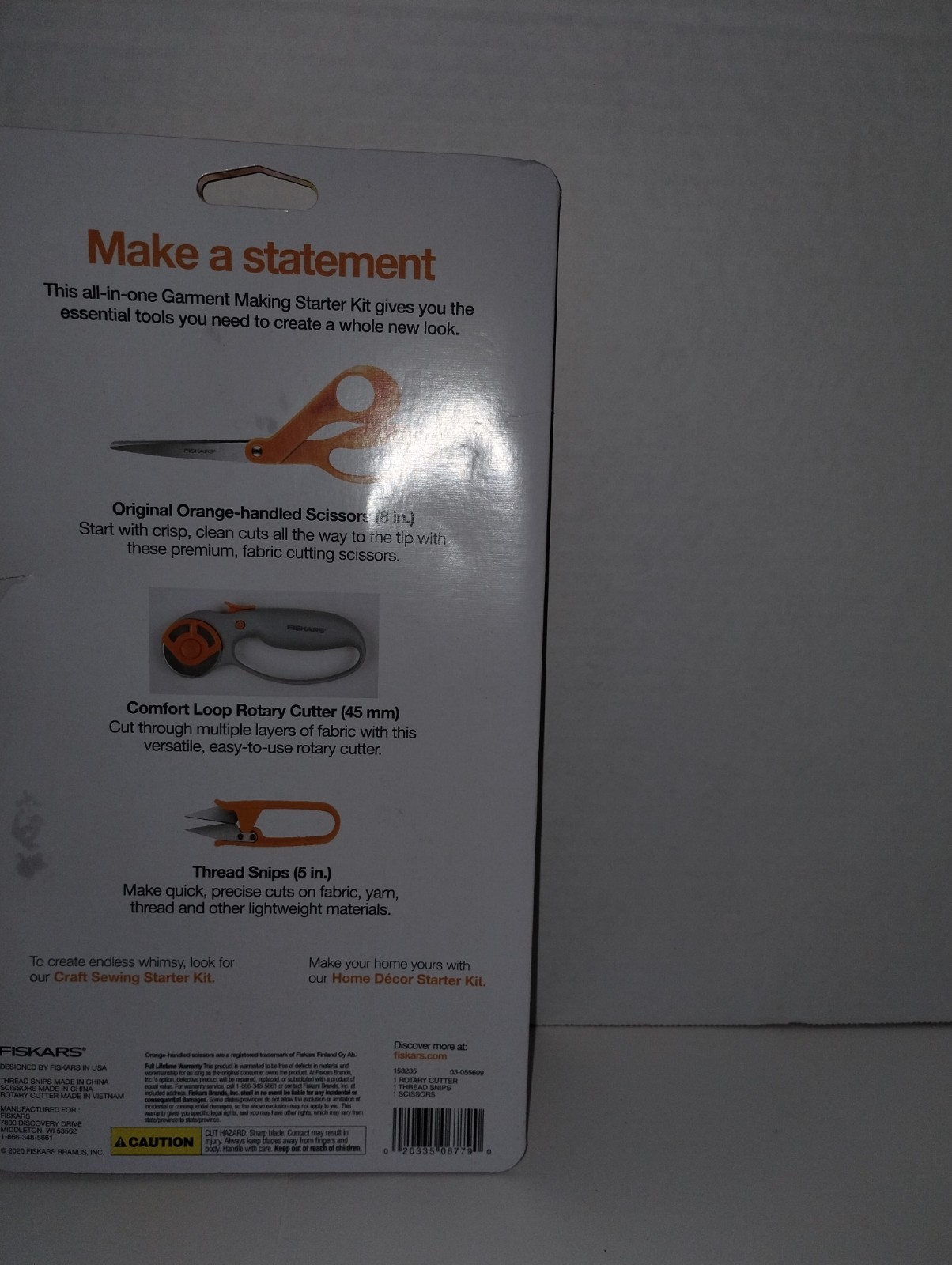 The Fiskars Garment Making Starter Set includes a 3-piece loop rotary cutter, perfect for precise cutting of fabric and other materials. The set also includes thread snips for easy and clean snipping. Made by the trusted brand Fiskars, this set is ideal for crafters and seamstresses looking for high-quality cutting tools to add to their collection.