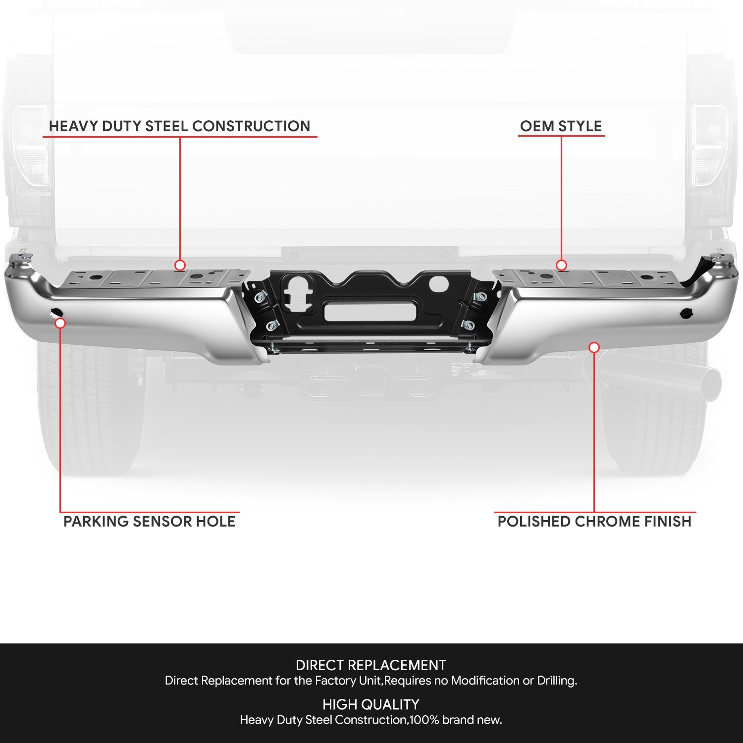 $ 10.56Fit 17-22 F-250 SD w/o Sensor Holes Chrome Rear Bumper Face Bar & Reinforcement