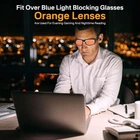 【Orange Tinted Lenses to Protect Your Eyes】Specifically designed for those sensitive to light, the filtered light through the orange lenses is gentle on the eyes. Suitable for daytime or nighttime computer work, gaming, or TV watching. 【Block 99% of Harmful Blue Light】 Alleviate eye fatigue, dry-eye syndrome, tension headaches. Amber blue light glasses feature the latest HD orange lenses, tested and proven to effectively block 99% of blue light. They provide soothing comfort to the eyes, bidding farewell to blue light troubles. 【Fall Asleep Quickly】Wear these glasses in the evening, especially for several hours before bedtime, particularly when watching TV or using the computer. They provide a very relaxing experience by blocking the disruptive blue light that interferes with melatonin production and release, enabling you to fall asleep quickly. 【Gaming Glasses】Esports players often expose themselves to harmful blue light for extended periods in dimly lit rooms, leading to eye fatigue, headaches, or difficulty falling asleep due to heightened brain activity. Wearing our glasses effectively blocks blue light, protects the eyes, promotes melatonin production, enhances sleep quality, and improves circadian rhythm. 【Fitover Blue Light Glasses】Fitover blue light blocking glasses utilize HD lenses to effectively block blue light while ensuring comfortable wear. Glasses feature anti-fog and anti-slip designs, with a TR90 frame providing strong wrap-around support. Are suitable for your glasses with a lens height not exceeding 1.77 inches (45mm) and a lens width not exceeding 2.32 inches (59mm).