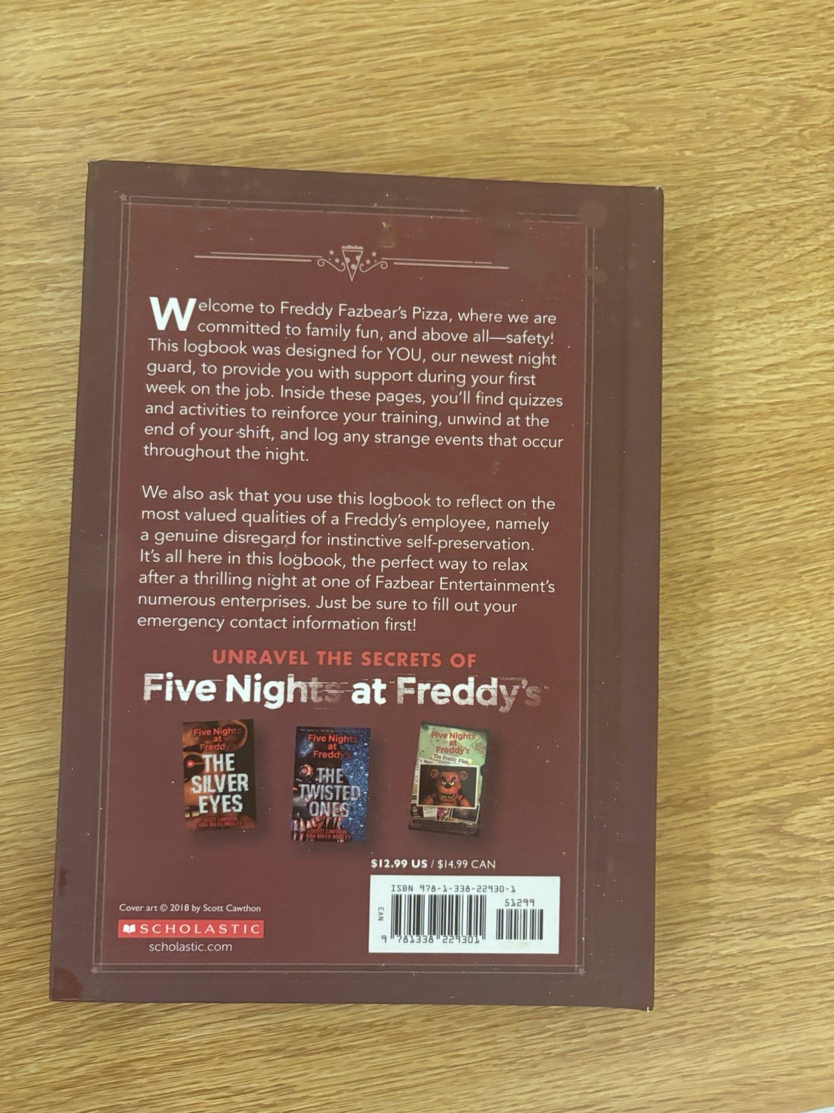 Format:HardcoverItem Weight:12.8 OzLanguage:EnglishNarrative Type:Fictiongtin13:9781338229301Personalize:NoISBN:9781338229301Inscribed:NoPublication Year:2017Genre:Young Adult NonfictionOriginal Language:EnglishItem Width:6.3 inIllustrator:Glass House Graphics, YesItem Length:8.8 inPersonalized:NoPublisher:Scholastic, IncorporatedIntended Audience:Adults, Young AdultsEdition:Collector's EditionAuthor:Scott CawthonTopic:Drama, Games & Activities / General, Media Tie-InItem Height:0.6 inEx Libris:NoBook Title:Survival Logbook: an Afk Book (Five Nights at Freddy's)Number of Pages:112 PagesFeatures:Leather BoundBook Series:Five Nights At Freddy’sSigned:No