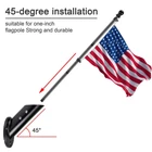 Flag Pole Holder Specification Material: 304 Stainless Steel Color: Black weight: 0.57lb / 259.5g Installation Accessories Specification Screws: Length 1.57in / 40mm Expansion screws: Length 1.69in / 43mm Installation Method ✔ If you're mounting to stone/concrete/masonry, first mark the installation position of 3 holes. And then drill a hole slightly longer than 43mm with 10mm (3/8”) diameter brill. Insert the expansion screw fully into the hole in the wall. Then align the three holes of the bracket with the installation position, and finally tighten the screw to fix the base with the cross screwdriver. What will you get? Flag Pole Holder x 1 Expansion screws x 3 Screws x 3 304 stainless steel: The surface is beautiful, bright, durable, and scratch-free. Highly polished to a beautiful mirror-like finish. Flag Pole Bracket: It is made high quality 304 stainless steel which is waterproof, corrosion-resistant, and durable. More durable than aluminum, plastic materials, or other materials. 45 degrees install: It can be installed on your roof, yard, porch, truck, or RV, as well as the yacht, boat, deck, wooden pile, etc. Size: Suitable for flagpole within 1 inch. Measures approximately 2.75”w x 4.33“h. And come with screws and expansion screws for your choice. RISK-FREE purchase! If you have any issues or you think everything is not as advertised, please feel free to us.