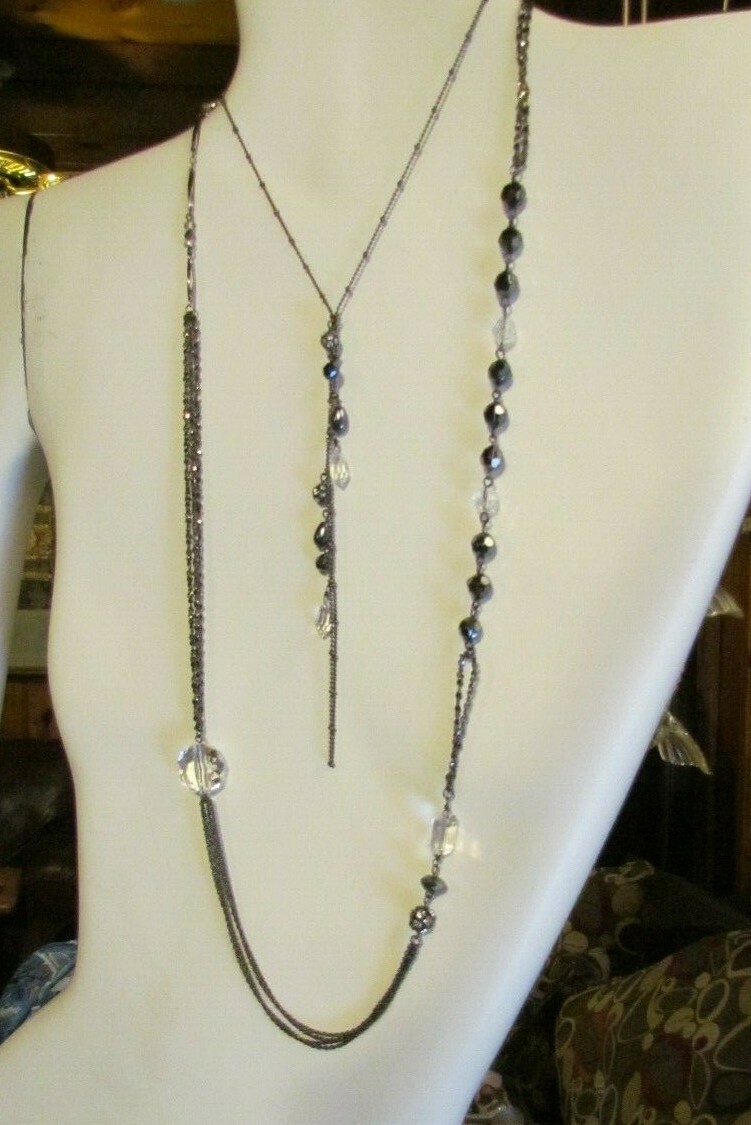 Flapper Style Necklace Black Bead Multi Chain DISCO BALL Hippie Dangle Necklace