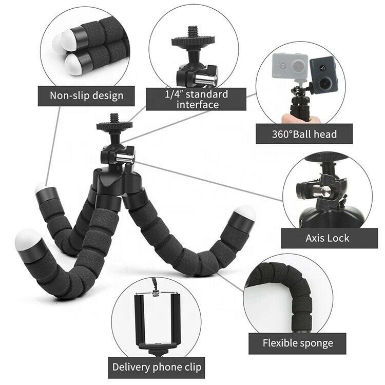 Flexible Smartphone Tripod Octopus Bluetooth Remote Universal for Iphone Samsung Works with all iPhone models 4+ 4/5/6/7/8/X/11/12 S/SE/R/Pro/Max/Plus Works with all Android Phones with Android 4.3 and newer. Clamp Opens to 3.4in to support most modern Smartphones Soft foam pads to prevent damage to smartphones Standard mounting screw means tripod can also support action cams and other small devices. Package Includes: 1 x Flexible octopus tripod 1 x Bluetooth Remote 1x Smartphone adapter Warranty If for any reason you are not satisfied with your purchase we will replace it for free within 30 days. If a similar item is not available then a full refund will be offered. Shipping Items will ship same day if cleared payment is received before 10AM CT. Orders over $200 will require a signature for delivery.
