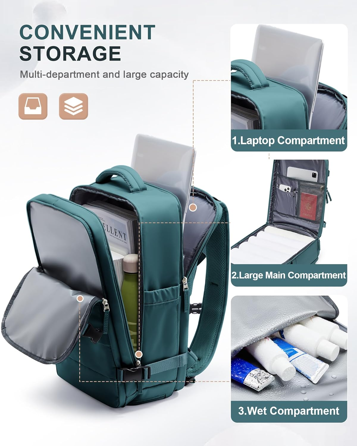 Store New Arrivals Add to Favorite View Feedback Contact Travel Backpack for Women Men Carry on Backpack Flight Approved Gym Bag with Shoe Compartment Hiking Waterproof Laptop Backpack College Essentials Peacock Blue Description Age Range Description Adult Number of Items 1 Storage Volume 18 Liters Pattern Solid Material Type Polyester, Cotton Apparel Closure Type Zipper Pocket Description Utility Pocket Compatible Device Size Maximum 15.6 Inches Embellishment Feature Cord Item Shape Rectangular Unit Count 1 Count Brand Name UPPACK character Sports Outer Material Polyester Lining Description Cotton Backpack Design Laptop Backpack Water Resistance Level Waterproof Item Weight 2.2 Pounds Number Of Pockets 8 Shell Type Soft Shell Item Dimensions D x W x H 6.7"D x 10.62"W x 10.62"H School Type High school Color B-peacock Blue Strap Type Shoulder Strap Style Name Modern Product Care Instructions Machine Wash Size Small 【High quality fabric】: The backpack is made of waterproof durable polyester material, the surface is smooth, if it gets dirty, you can wipe it gently with wet paper towels. The back is made of 3D cushioned cotton, the honeycomb design is ergonomic, comfortable and breathable, and the shoulder strap is added with shoulder pads. 【Large capacity】: The backpack has a main pocket, computer compartment, wet pocket, separate shoe compartment, two front pockets, a back pocket, and a side pocket. The main pocket can hold 4 blouses, 3 pairs of pants and other intimate clothing, the computer compartment can hold a 15.6-inch laptop, the front pocket can hold other personal small items, the back pocket is an anti-theft design pocket for mobile phones and other valuables, and the side pocket can hold water cups or umbrellas. 【Shoe compartment & Wet pocket】: The shoe compartment can put a pair of shoes below 9.5 size in the United States, it is clean and will not stain the clothes, there are two vents at the bottom of the shoe compartment, which can ensure that the entire shoe compartment is ventilated without peculiar smell, the wet pocket is made of high-quality fabric with high waterproofing. You can put toiletries or wet clothes or umbrellas to ensure dry and wet separation. 【USB charging port design】: intimate design, when your mobile phone is out of power, it will be your most secure dependence, you can travel with confidence. Connect the charging port inside the bag with the power bank, and connect the charging port outside the bag with the mobile phone. 【Dimension】Size:16.5"*12.5"*7.8", Weight: 1.1KG/2.2LB. You can board directly and do not need to check in. It can be placed not only in the overhead compartment of the aircraft, but also under the seat. Product Description ABOUT US We offer the best prices around on high quality products. Our E-store includes media such as books, movies, music and games while offering electronics, toys, sporting apparel, clothing, tools, general home, garden items and more. SHIPPING We are always working hard to ensure your package arrives as soon as possible. Please understand that some factors like weather, high postal traffic, and the performance of shipping companies are outside of our control. We offer free shipping to the lower 48 states and ship within 2 business days of payment, usually sooner. We do not accept P.O. Boxes. Please provide a physical address. RETURNS We offer a 30-Day Return Policy on items which you are not completely satisfied with. You have the option for a full-refund or an exchange of the item. No returns are available on items shipped outside of the USA. PAYMENT We accept PayPal. CONTACT US This page content is yet to come Please ad us to your favorite seller and visit again later Thank You CUSTOMER SATISFACTION We try our very best to make sure every customer is completely satisfied. If there's a problem, message us! We're happy to help.