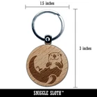 Floating Sea Otter Engraved Wood Round Keychain Tag Charm