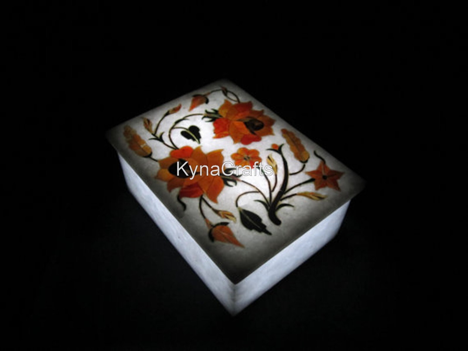 · This elegant and luxurious marble box is a great choice for storing your watches, rings, earrings, ear studs, necklaces, bracelets, cuff links, and brooches etc. · Handcrafted in India with Ancient Inlay Art, by the Skilled Artisans who are descendants of those families who built the Taj Mahal. · It is the perfect gift for your loved one i.e. mother, girlfriend, wife, daughter, colleague, or friend, a good choice as Birthday, Christmas , Wedding day, Valentine's Day, Mother's day, Anniversary Day Gift. · Adds high-style to yours dressing table & wardrobe. · Process of Inlay Art “Inlay work” is one of the most attractive art that done from marble. Same type of that adorns the Taj-Mahal and other Mughal monuments. It is a closely protected traditional art and only a few expert exponents are available today. The delicate process involves cutting and engraving marble shapes manually. To start with, a predefined pattern e.g., floral design or geometrical design is engraved on the marble slab. Small pieces of marble of different shades are cut delicately to fit in these grooves precisely. These small pieces are then slipped in the grooves. There are many varieties of colored stone available for utilization in marble inlay work: malachite, carnelian, jasper, mother of pearl, abalone shell, lapis lazuli, agate, coral, turquoise and tiger eye to name just a few. The grooves are filled with their precisely corresponding shapes of colored stone and secured in place with a white putty made from oil, and wax. Once the design is completely dry, the piece is polished with a mixture of sand, water and emery paper to give a shiny smooth finish. Apart from marble, many other materials can also be used. If You Are Looking Something Customize, Let Us Know We Will Make For You As Per Your Design, Size & Shape. Buyer has to pay Custom Duty or other taxes if any applicable in destination country. No two pieces are exactly alike, as the Gem Stones used have different Color, Pattern & Textures.
