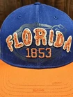 UF Florida Gators hat by New Era in a stretchfit size M/L. This blue and orange baseball cap features a solid pattern and is perfect for any occasion, from a football game to a party or casual outing. The cap is designed with the Gator logo and is a great way to show your support for the NCAA football team. The cap is made with a stretch material, ensuring a comfortable fit for all day wear. This hat is a must-have for any college sports fan and is an essential accessory for any wardrobe.