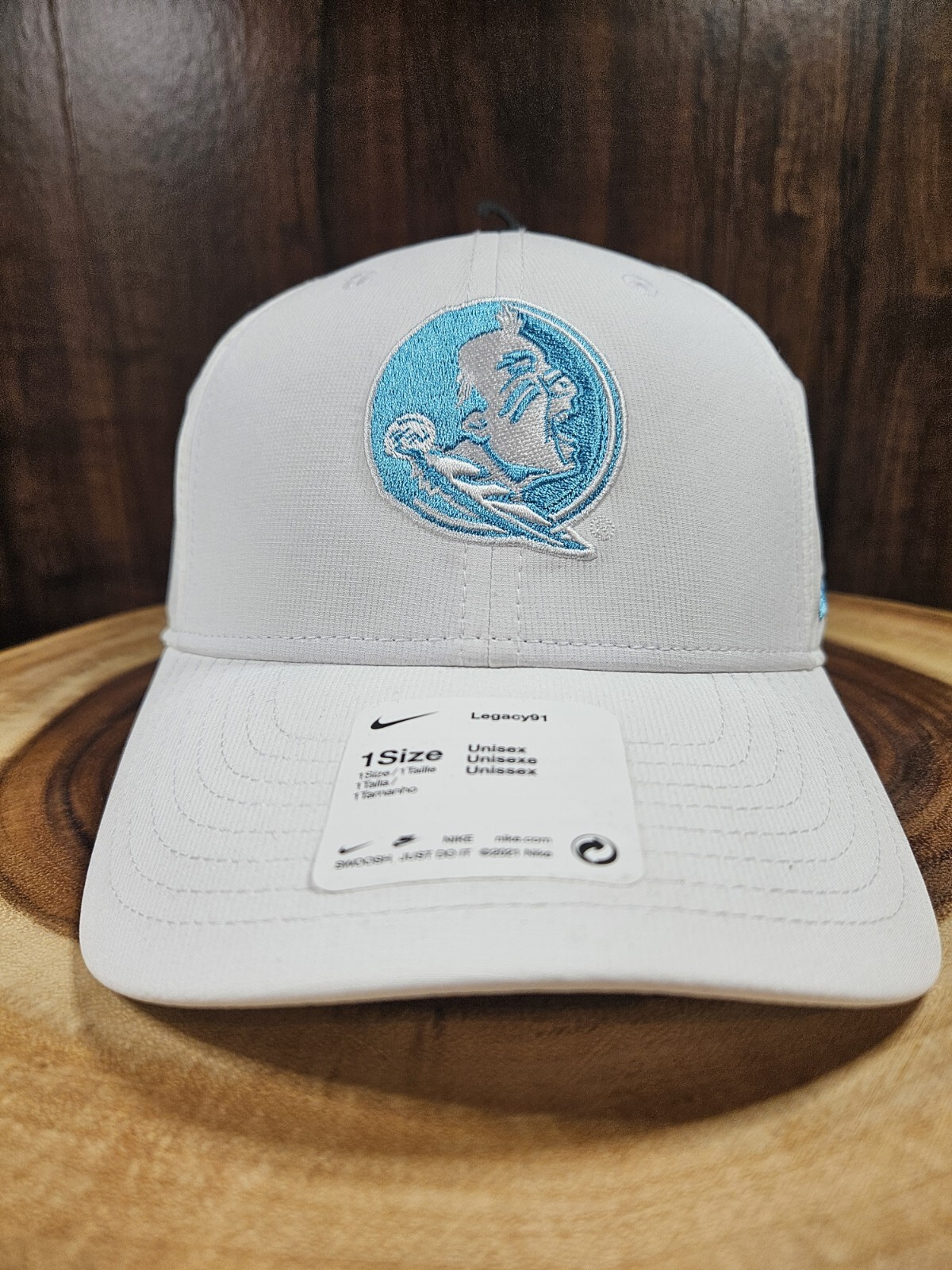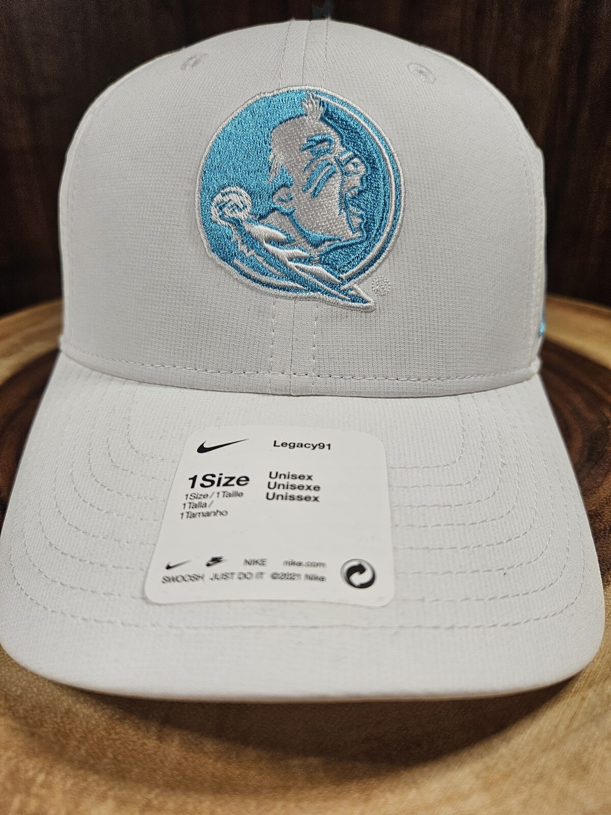 Show off your team spirit with this Nike Legacy 91 hat in the Florida State Seminoles design. This baseball cap features a solid pattern in blue and white, with the NCAA Athletics, University, NCAA Football, College, and Sports themes. The hat is adjustable with a strapback closure, making it suitable for unisex adults of all sizes. Perfect for travel, football games, running, parties, casual wear, sporting events, workwear, and business occasions, this cap is a must-have accessory for any Florida State Seminoles fan. The hat is made by Nike, a well-known brand in the sports industry, and is ideal for those who love to show their support for their favorite team.