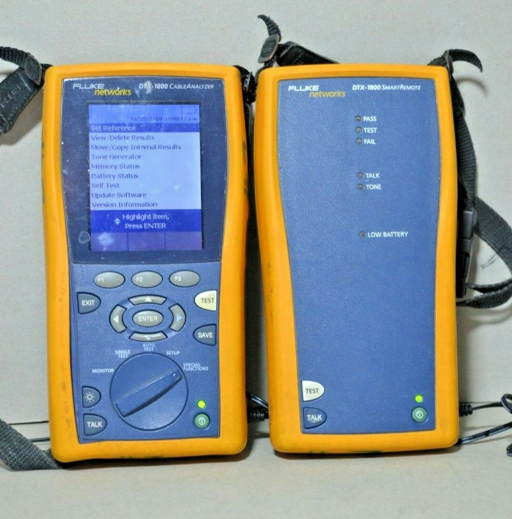 Fluke DTX-1800 Cable Analyzer w/ Latest 2.74 Firmware Version *** Unit is used in good working condition, case has some markings *** Batteries do not hold a charge *** *** Includes (1) Main Unit, (1) Smart Remote, (2) Batteries w/o charge *** Does not include channel or permanent link adapters *** *** Contact Us w/ Questions *** International Shipping Available ***