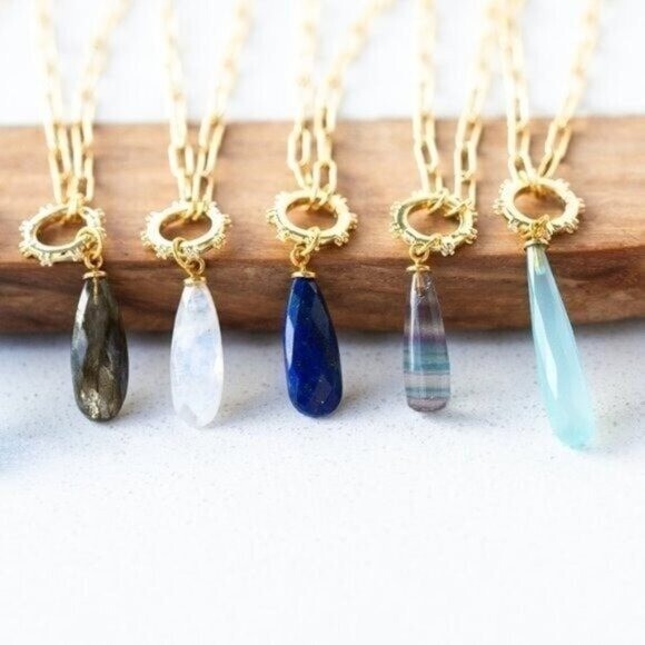 Lovely Gold Removable Genuine Fluorite Pendant Necklace - Beautiful colored pendant with shades of pastel lavender, purples, blue, yellows. The necklace is stunning with the pendant removed as well! 14K Gold Vermeil Paperclip Chain with Carabiner with Cubic Zirconia - attached is the Genuine Fluorite Pendant measures approximately 15mmx12mm - Pendant is removable. Necklace is 16" plus 2" extender Fluorite is aligned with the astrological signs of Pisces and Capricorn. On an emotional level, fluorite is known to promote emotional balance and clarity. It helps in releasing emotional blockages and supports gaining a clear vision of situations. Fluorite encourages understanding and integrating emotions with a calm and balanced mind. Other gemstone pendants available are: aqua chalcedony, rainbow moonstone, labradorite, blue chalcedony, and Lapis Lazuli - please ask if you would like an extra stone for a deal or to swap for a different stone. Fluorite Necklace Fluorite Jewelry Healing crystal Jewelry Birthstone Jewelry Gemstone Jewelry September Birthstone Jewelry Lapis Lazuli Necklace Gold Paperclip Chain Gorjana Goddess Necklace Gift or Mom Gift for Girlfriend