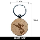 Fluttering Hummingbird Engraved Wood Round Keychain Tag Charm
