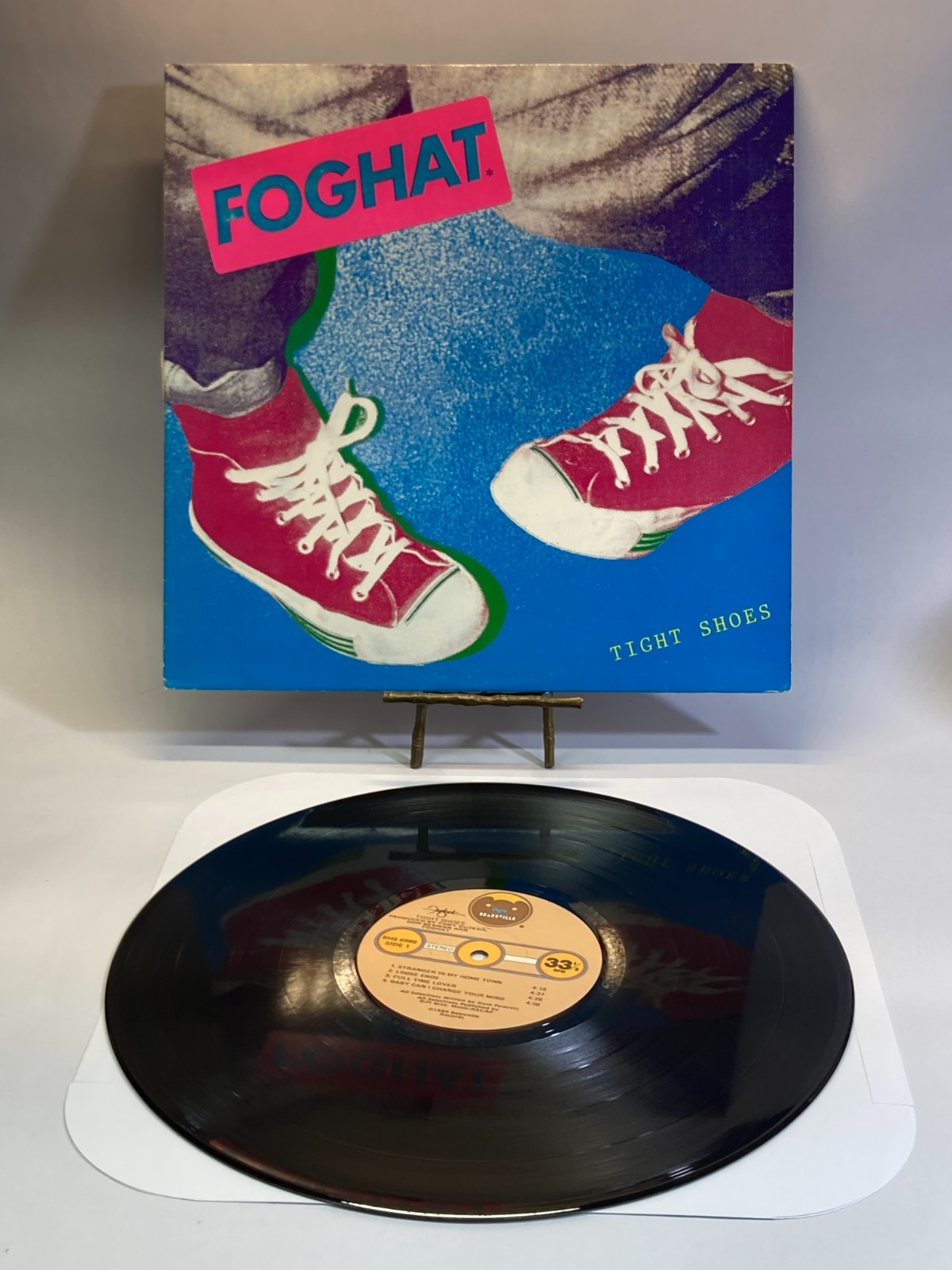 The Foghat "Tight Shoes" vintage vinyl LP from 1980 on Bearsville Records is a classic rock gem in excellent condition. This 12" LP features the iconic rock band Foghat's signature pop rock style and comes sealed in its original cardboard sleeve. With a sleek black vinyl material and excellent record grading, this LP is a must-have for any 1980s rock music collector.