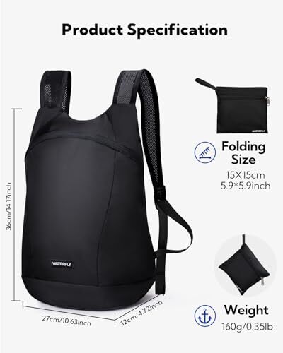 Return Policy Fast Delivery Trusted seller Foldable Lightweight Hiking Backpack: 15L Packable Traveling Daypack Men Women Ultralight Thin Casual Day Pack Bag for Outdoor Sports Camping Beach Park (Black) Product Description Folding Design: Foldable backpack size is 14.17 x 10.6 x 4.72 inches and the folded size is only 5.9 x 5.9 x 1.2 inches, which can be easily put into pocket, luggage, handbag and storage box for convenient carrying and storage, saving you a lot of space. Foldable daypack can be easily unfolded for use. Lightweight and Comfortable: Weighing only 5 ounces, the hiking daypack is so light that you won't even feel the weight of the pack on your back, which greatly reduces the burden of traveling. The hiking bag also has breathable mesh shoulder straps that take the pressure off your shoulders and keep you comfortable. Large Capacity: The packable daypack has a capacity of 15 L, providing enough space for your most important items (such as clothes, water bottles, umbrellas, snacks, etc). T is also a small pocket on the back of the backpack w you can conveniently store valuable small items such as wallets, cards, cash, passports, and more. Premium Material: This packable day pack is made of premium tear-resistant nylon fabric, which can effectively prevent tears and water-resistant. The backpack's SBS zippers are reinforced with multiple stitching for greater durability. Wide Application: backpack is lightweight, small and foldable, and can be used as an excellent solution when going out. It is very suitable for short trips, city tours, shopping, walking, hiking, cycling, camping, and beach holidays, etc.Essential for daily leisure, travel and outdoor activities. Shipping Returns Payment Shipping Shipping is FREE to all addresses other than APO/PO boxes in the lower 48 states. All our stock ships from US-based warehouses. Shipped via USPS or UPS (depending on location and package weight) Unless stated otherwise, all orders will ship within 24-72 hours of your payment being processed. Check our feedback to see the great reviews of FAST shipping we offer. Returns Seller does not accept returns Payment We currently accept payment via eBay managed payments only. Once payment is cleared, we will dispatch your shipment within 1-3 business days. Please refer to the "Shipping" tab for more information regarding shipping speed to your destination.