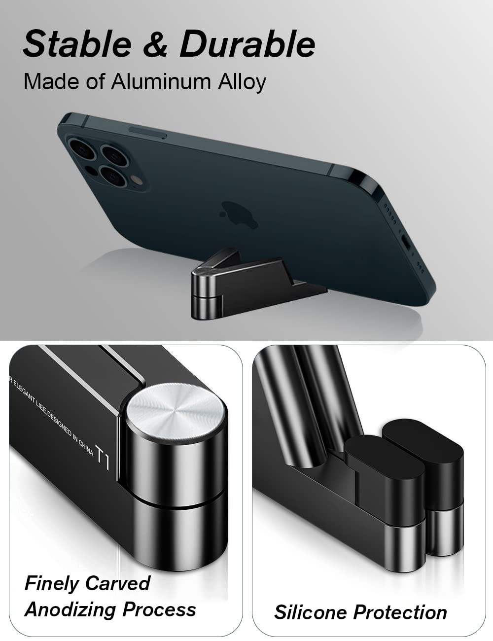 This stand is a game-changer—sturdy yet portable with its sleek aluminum alloy design. The silicone grips keep my phone secure without scratches, and it folds down small enough to toss in my pocket. Perfect for watching videos at my desk or on the go, and it even holds my tablet steady. No wobbling, just solid quality! A must-have for tech lovers.