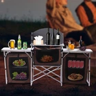 Foldable Camping Kitchen Station Kit Folding Grill Table Tabletop & 2 Side Table Specification Color: Brown Material: Aluminum Alloy, Oxford Fabric, Mdf Surface Treatment: Brushing Aluminum Tube Diameter: Ø25 Ø23 Ø19mm/ Ø1 Ø0.9 Ø0.7inch Aluminum Frame: 32mm/1.3inch Density Board Thickness: 4.5mm/0.2inch Product Overall Size: 174*46*110cm/69.3*18.4*43.3inch Product Folded Size: 79*49*10cm/31*19*3.9" Middle Table Size: 66*34*80cm/26*13.4*31.5inch Side Table Size: 60*40*70cm/23.6*15.7*27.6inch Cross Support Frame Height: 40cm/15.7inch Package Size: 80*57*12cm/31.5*22.4*4.7inch Gross Weight: 14kg/30.9lbs Net Weight:13.2kg/29.1lbs Load Capacity per Table: 50kg/110lbs Package Included 1* Table Frame 2* Metal Frames 1* Windshield 3* Brown Fabric Covers Folding Camping Kitchen Table Picnic Cabinet Table Portable Cooking Storage Rack Foldable Camping Kitchen Station Kit Folding Grill Table Tabletop & 2 Side Table Specification Color: Brown Model: Xh14645 Material: Aluminum Alloy, Oxford Fabric, Mdf Surface Treatment: Brushing Aluminum Tube Diameter: Ø25 Ø23 Ø19mm/ Ø1 Ø0.9 Ø0.7inch Aluminum Frame: 32mm/1.3inch Density Board Thickness: 4.5mm/0.2inch Product Overall Size: 174*46*110cm/69.3*18.4*43.3inch Product Folded Size: 79*49*10cm/31*19*3.9" Middle Table Size: 66*34*80cm/26*13.4*31.5inch Side Table Size: 60*40*70cm/23.6*15.7*27.6inch Cross Support Frame Height: 40cm/15.7inch Package Size: 80*57*12cm/31.5*22.4*4.7inch Gross Weight: 14kg/30.9lbs Net Weight:13.2kg/29.1lbs Load Capacity per Table: 50kg/110lbs Description Camping Is a Great Way to Relax and Unwind. but Camping May Require some Good Equipment, Such As a Folding Camping Kitchen Station for Barbecue. Our Camping Kitchen Station with 3 Tables Is the Ideal Choice for You. It Is Made of Strong Aluminum Alloy Frames and 600d Oxford Fabric, Very Strong and Solid with a Good Load-bearing Capacity. Folding Design Is a Good Choice for Carrying out. so Hurry up and Buy It to Camp with Your Family! Key Features High-quality Materials: the Tables of This Camping Kitchen Station Are Mainly Made of Aluminum-alloy, 600d Oxford Fabric and Mdf, Which Are Very Sturdy and Solid. Each Table Can Roughly Withstand 50kg/110lbs of Weight. You Can Use It with Confidence. Portable: This Folding Camping Kitchen Station Is Designed for Camping and Outdoor Carrying. It Is Light in Weight and Small in Size After Folding Easily, Which Is Very Convenient for Outdoor Use. Good Stability: the Cross and Square Aluminum Alloy Frames Are Solid Enough to Make the Table Stand Firmly on the Ground Without Wobbling. Thoughtful Windshield: the Center Table Is Equipped with a 3-Sided Windshield to Prevent the Wind from Blowing out the Fire While You Cook. Enough Space: This Kitchen Station Consists of Three Tables with Many Compartments, so It Not Only Has Enough Storage Space for Camping Supplies but Also Is Available for Several People to Make or Enjoy Food at the Same Time. It Is a Good Choice for Multi-person Camping! Suitable Height: the Highest Operating Table of This Camping Kitchen Station Is 31.5inch, Which Is Suitable for Most Adults to Comfortably Stand for Operation Without Bending down. Easy to Assemble: the Structure of This Portable Kitchen Station Is Simple and Can Be Easily Assembled by One Person. Relaxing Outdoor Time: It Is Very Relaxing and Enjoyable to Take Our Camping Chair with Your Family or Friends out for Camping or Picnics. Stylish Appearance: the Simple Line Design Looks Neat and Stylish, so It Is a Good Choice for Camping. Guaranteed Customer Service: Your Satisfaction Is Our Top Priority, We Will Make Things Right for You. If You Are Unsatisfied with Our Products, You Can Contact Us and We Will Ensure You Have a Pleasant Shopping Experience in Our Store. Details Cloth Covers: with the Cloth Covers, Things in the Compartments Will Not Fall off Easily. It Is Also Equipped with Straps That Can Be Easily and Firmly Fixed to the Table Legs. Moreover, the Grid Zipper Door of the Cloth Cover Is Easy to Open and Close As Well As to See and Find the Contents Inside. Anti-slip Pads: All the Feet Are Equipped with Anti-slip Pads to Prevent the Table from Moving Around. Hooks : Oxford Bags Are Connected to the Table with High-quality Metal Hooks to Ensure Their Stability and Easier Removal. Brushed Surface: After Being Brushed, the Tabletops Are Very Smooth. Moreover, the Brushed Tabletops Are Both Waterproof and Easy to Clean. Wrapped Edges: the Edges of the Mdf Tables Are Wrapped to Prevent Scratches and Bruises, Making Them Safer to Use. Application This Camping Kitchen Station Is Designed for Outdoor Use, You Can Use It in Your Garden, on the Beach, on Camping or Hiking Trips, and Fishing. You Can Even Use It at Home! Package Included 1* Table Frame 2* Metal Frames 1* Windshield 3* Brown Fabric Covers Notes Please Wear Gloves for Installation to Prevent Unnecessary Scratches. If the Equipment Is Very Dirty, Use a Mild Detergent and a Damp Cloth to Clean It. Avoid Using Sprays and Other Harsh Cleaners As They May Stain, Dirty or Dull the Surface. Make Sure the Unit Is Completely Dry and Store It in a Carrying Bag in a Dry, Ventilated Area. Please Allow the Slight Color Difference Caused by the Shooting Light and 1-3 Cm Error Due to Manual Measurement, and Make Sure You Do Not Mind Before Ordering. Payment Delivery details Terms of sales About us Contact us Payment We accept ebay payment 。 Fees such as import duties, taxes are not included in the item price or shipping costs. These charges are the buyer's responsibility. Delivery details Shipping: 2-9 working days to: USA Terms of sales We maintain high standards of excellence and strive for hundred percent customer satisfaction. Feedback is very important to us. We hope that you contact us immediately before you give neutral or negative feedback, so that we can address your concerns. It is impossible to address issues if we do not know about them! About us Your satis faction is our ultimate g