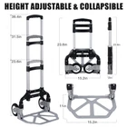High Quality Hand Truck : Our fold up dolly wheels are made of upgraded rubber wheels with smooth surface, and smooth rolling to increase the load-bearing capacity of the cart, it is more wear-resistant smooth and durable than other pvc wheels. Sturdy Structure Dolly Cart: Our Truck Trolley is made of rugged, rustproof solid aluminum alloy, PVC and Rubber materials, this cart is durable and reliable to sustain weight. Especially solid aluminium wheel suspensions,Extra stability and ride comfort. Easy Storage: Our Luggage Cart folding and stretchable design, not only save space , but also bring you endless convenience, there is no problem maneuvering it and safely bringing in boxes,luggage etc. Telescopic Handle: The foldable hand cart comes with an adjustable telescopic handle that you can adjust from 24 inches to 39.4 inches. Suitable for people of different heights. And Also comes with bungee cord and lightweight. Multi-Purpose: Car seat cart Easy to carry your heavy luggages, The foldable hand truck helps moving heavy objects. Ideal for home, auto, office, business, transport, camping, travel ,fishing and shopping use.