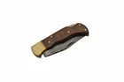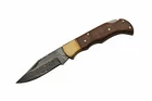 Folding Knife | Rite Edge Classic Lockback Damascus Steel 3" Blade Wood Handle CLASSIC LOCKBACK FOLDING KNIFE 3.75" CLOSED 3" DAMASCUS STEEL BLADE 3.75" WOODEN HANDLE BRASS PINS ON HANDLE BRASS LINER LOCK BACK DECORATIVE FILEWORK SPINE TOP GRAIN LEATHER BELT SHEATH INCLUDED
