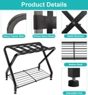 Store New Arrivals Add to Favorite View Feedback Contact Folding Luggage Rack with 2-Tiers Storage Shelf, Foldable Steel Frame Luggage Organizers for Suitcase, Metal Luggage Holder for Guest Room, Bedroom, Hotel, Closet, Black, 1Pack Description Item model number WHB-LR-ROUND-1 Item Shape Black 1pcs Item dimensions L x W x H 27.5 x 15.3 x 20.5 inches Number of Levels 2 Assembly Required Yes Batteries required No Product Dimensions 27.5 x 15.3 x 20.5 inches Material Heavy Tubular Steel+ Thicken Nylon Straps Country of Origin China Load Capacity 150 Pounds Item Weight 9.04 pounds Color Black Shape Black 1pcs Base Type Leg Finish types Black power-coated finish Finish Type Black power-coated finish Sturdy and Convenient: With a size of 27.5 "L x 15.3" W x 20.5 "H, it is spacious enough to accommodate different sizes of luggage. Constructed with heavy-duty steel, it can hold up to 150 lbs without deforming. This luggage rack for the guest room is not only suitable for storing suitcases, but also can be used to store a variety of room items. Double-Decker Design: Featuring two levels of storage space, this luggage organizer has a stable steel frame on the lower level and five thick nylon straps on the upper level. You can store your suitcases on the top level and keep your luggage off the floor, while the lower shelf can hold shoes, extra bags, pillows, storage boxes, pajamas and spare bedroom essentials. Efficient Folding: Thanks to suitcase stand's folding design that allows for effortless storage under beds, in closets, or sofas without taking up extra space. You can easily store and put this luggage stand away when not in use, saving you valuable storage space. This feature makes your life more organized. It's a practical and efficient storage solution for your daily needs. Multi-scenario application: Our baggage shelf is perfect for personal home or business use. It's great for bedrooms, hotels, motels, guest rooms, and more. These luggage accessories will make your room tidier and more organized, while providing added convenience for your guests in your guest bedroom. Its simple and modern design can also be used as guest bedroom decor. Easy to Assemble: Our luggage racks for suitcases for bedroom comes with an easy-to-understand instruction manual and all the accessories needed to assemble it. You can have it up and running in just a matter of minutes. Product Description Whoonba Luggage Rack Look no further than Whoonba luggage storage organizer! Looking for a more convenient and efficient way to pack and unpack your luggage? Worried about scratches on the floor or no proper place for dealing with guest room essentials? Crafted with sturdy steel tubes and heavy-duty nylon straps, this bag rack can support up to 150 lbs. The bottom shelf is perfect for storing storage bins, shoes, extra bags, and other travel essentials. With the bag rack, you can finally handle your luggage bag without hurting your back. - Easy Folding - Thicken Nylon Straps - Stable Modeling Structure - Steel Shelf for Storage Upgrade your luggage experience with Whoonba suitcase rack today! When not in use, this foldable luggage rack can be easily folded for storage. Its compact design makes it perfect for household use in bedrooms, guest rooms, or anywhere else you choose. It's a ideal for commercial use in hotels, motels, vacation rentals, and more. It's also a great storage helper for camping trips. Color Matte Black Material Heavy Tubular Steel+ Thicken Nylon Straps Open Size 27.5 x 15.3 x 20.5 inches Folded Size 27.5 x 4.3 x 24.4 inches Product Weight 10.2 lbs ABOUT US We offer the best prices around on high quality products. Our E-store includes media such as books, movies, music and games while offering electronics, toys, sporting apparel, clothing, tools, general home, garden items and more. SHIPPING We are always working hard to ensure your package arrives as soon as possible. Please understand that some factors like weather, high postal traffic, and the performance of shipping companies are outside of our control. We offer free shipping to the lower 48 states and ship within 2 business days of payment, usually sooner. We do not accept P.O. Boxes. Please provide a physical address. For shipping outside of the continental USA, we only use eBay's Global Shipping Program.The item is shipped to KY and then sent to the rest of the world. International customers are responsible for all duties and taxes. Continue to check out in order to calculate costs for shipping the item to your country. Messages regarding eBay's Global Shipping Program MUST be directed at eBay EXCLUSIVELY. RETURNS We offer a 30-Day Return Policy on items which you are not completely satisfied with. You have the option for a full-refund or an exchange of the item. No returns are available on items shipped outside of the USA. PAYMENT We accept PayPal. CONTACT US This page content is yet to come Please ad us to your favorite seller and visit again later Thank You CUSTOMER SATISFACTION We try our very best to make sure every customer is completely satisfied. If there's a problem, message us! We're happy to help. WE ACCEPT Copyright © 2021 AutoDS. | All Rights Reserved