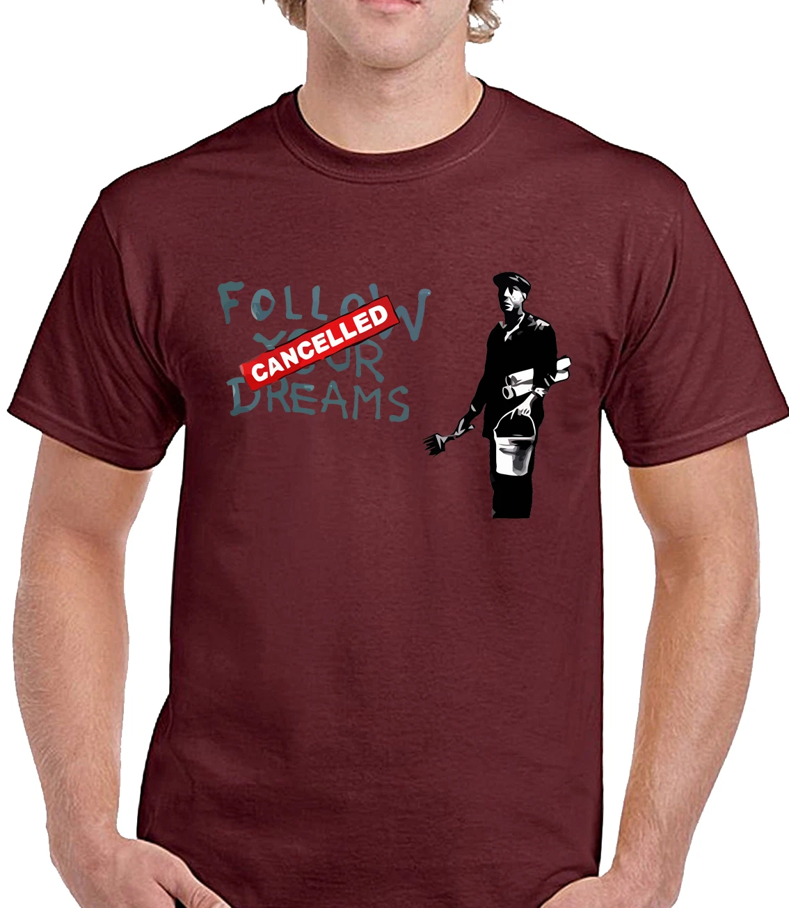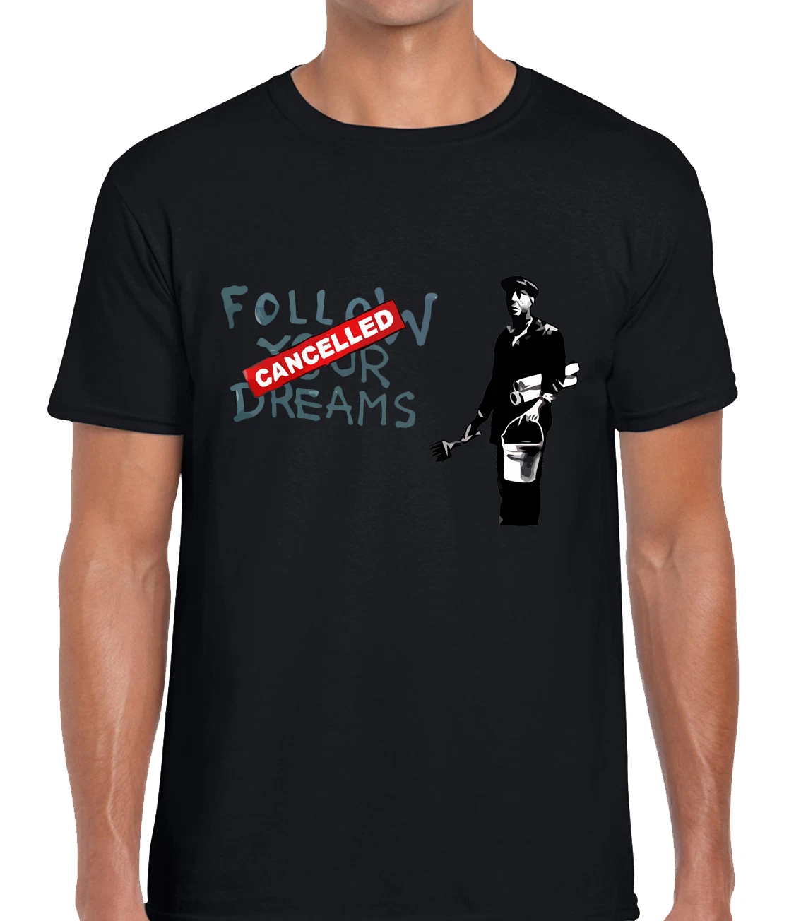 Welcome to Our eBay Shop Fast Shipping Hasslefree Returns Secure Payment Excellent Service Follow Your Dreams Funny Graffiti Artist Banksy Product Description All of our t-shirts are brand new and made to order. They are printed in our USA facilities with love and passion. We use various printing methods to ensure you the high quality, long lasting garments you or your loved ones deserve. We carry sizes from Youth Small to Adult-5XL in short sleeve t-shirts (depending on the design). You can refer to "SPECS & SIZING" to get accurate information regarding the sizes of the garments we use. If you have any questions regarding this item or any other item we have for sale, do not hesitate to contact us. We answer all messages within 1 business day. SPECS & SIZING SHIRT CARE TIPS Wash inside out with cold water with similar colors using a gentle cycle. Tumble dry low or hang-dry Avoid using bleach and do not dry clean. PAYMENT We accept payment by any of the following methods: PayPal Please pay as soon as possible after winning an auction, as that will allow us to post your item to you sooner! SHIPPING Your order will be dispatched within 2 business days of receiving payment (Monday-Friday) with a tracking number. In the very unlikely event that your item is lost or damaged during post, then WE are responsible and will issue either a full refund or replacement. RETURNS If you are not 100% satisfied with your purchase, you can return the product and get a full refund or exchange the product for another one, be it similar or not. You can return a product for up to 14 days from the date you purchased it. Any product you return must be in the same condition you received it and in the original packaging. Please keep the receipt. Feedback * Your great positive feedback will be greatly welcomed! * If you have any problem when you receive the item, please contact us first, we'll do our best to resolve the problem!:) Copyright © 2024 | All Rights Reserved