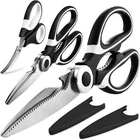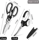 Versatile: Kitchen sissors are a versatile tool that can be used for a wide range of tasks in the kitchen. They can be used to cut through food items such as meat, poultry, vegetables, and herbs, as well as to open packaging, trim dough, and cut through twine or string.Seafood scissors make it easier to handle prawns, crabs. Convenient: Kitchen scissors are a convenient tool to have on hand in the kitchen. Unlike a knife, they can be used to snip food items without requiring a cutting board or other surface, and they are also easier to handle than a larger kitchen knife. Durable 2.5mm thickened heavy duty blades: Our kitchen scissors are made with 2.5mm thick stainless steel blades, which are more durable than regular scissors with 1.5mm thick blades, as 1.5mm blades are more easily damaged when cutting bones. Stainless steel blades prevent rust and corrosio, This ensures that they can withstand frequent use in the kitchen and will last for years to come. Easy to Clean: Kitchen scissors are easy to clean and maintain. They can be washed by hand with soap and water, or placed in the dishwasher for a thorough cleaning. Our models even come with a protective cover to keep the blades safe and clean when not in use. Special Features: OMDAR kitchen scissors come with additional features, such as built-in nutcrackers, bottle openers, or fish scalers. These special features can make the kitchen scissors even more versatile and useful in a variety of different situations. Tip: After cleaning the kitchen scissors, please dry the water stains to keep the scissors in a dry state, so that the scissors can get a longer service life.