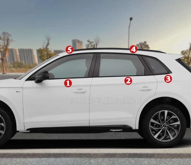 For AUDI Q5 SQ5 2009-14 15 16 2017 Titanium Window Frame Strip Cover Trim Black Attention: Because the same model car may be differently produced in different country. Please ensure the part of your car like our picture shows, or it will not fit, if any differences, please contact with us before purchase, thanks! Item Fitment: Fit For AUDI Q5 SQ5 2009-14 15 16 2017 Condition: 100% Brand New Material: High quality of stainless steel Color: Same as in the pictures Made in an ISO 9001 facility to ensure good quality Easy installed and No modification needed,double side Automotive tape at the back Package Include: 10 pcs/set(Sold as seen, please ensure suitability carefully before purchase) This item doesn't come with manual installation Installation method: 1. Clean the location of the installation with rubbing alcohol before proceeding. (make sure to remove any grease, wax or dust etc) 2. Please ensure that the product completely fits before proceeding with installation. (Note: if there any questions or if the product does not fit properly, please contact us) 3. Remove the high strength double-sided adhesive from the back of the plate. In the case of a relatively low temperature, heat installation location, and plate with a hair dryer or a heat gun on low setting 4. Carefully place the product in desired location and press down for about 1-2 minutes, (Note: do not wash your car for 24-hours. The adhesive should be cured after 12-hours) 5. The installation is complete