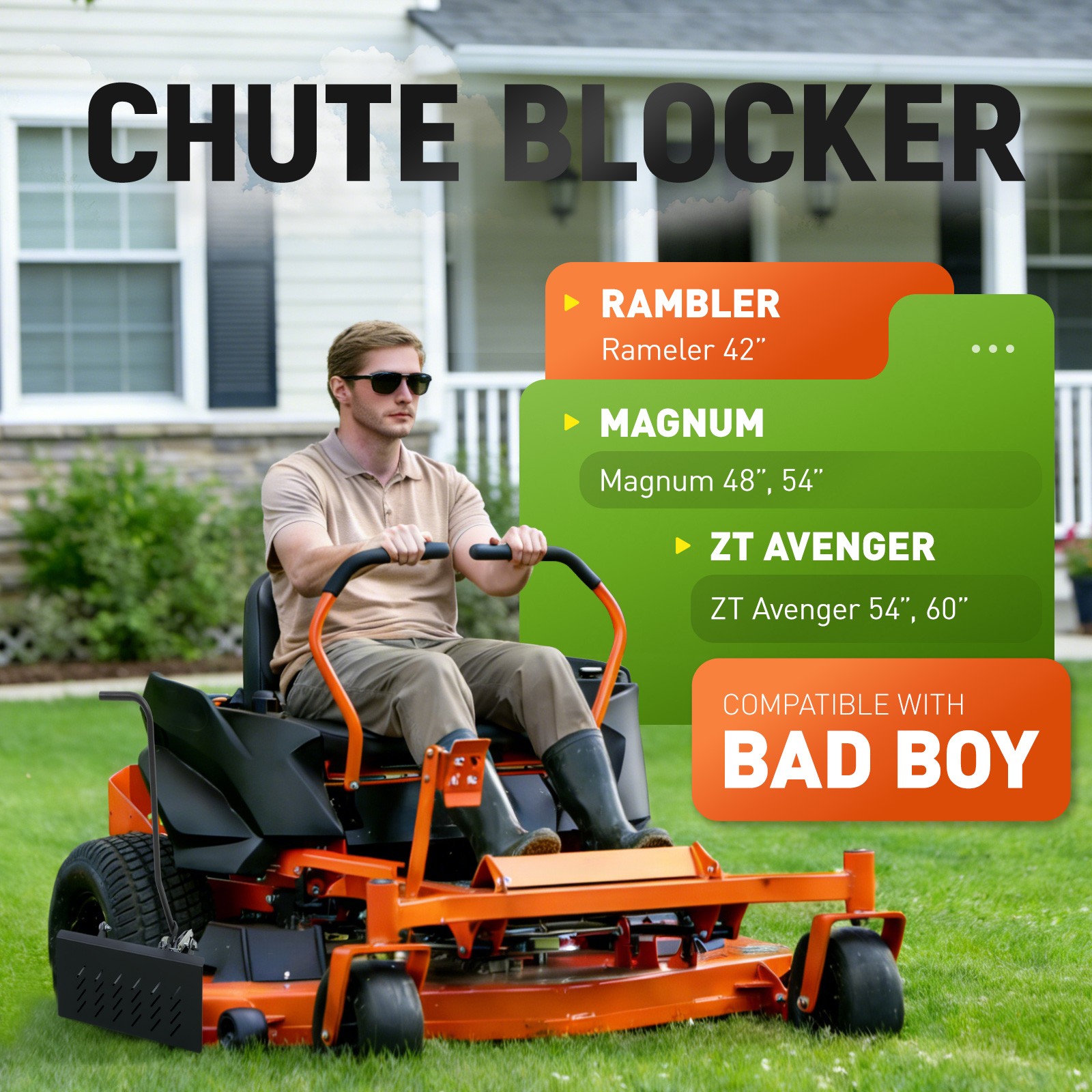 Chute Blocker For Bad Boy MAGNUM 48" 54" BAD BOY RAMBLER 42" ZT AVENGER 54",60" FIT FOR: For BAD BOY: MAGNUM 48”, 54” For BAD BOY: RAMBLER 42” For BAD BOY: ZT AVENGER 54”, 60” Specification : Condition: 100% Brand New Color: Black Material: Steel Surface Finish: Powder Coated Features : 1. Optimized Control: Through precise design, our cutting barrier effectively regulates the direction of grass clippings, ensuring a clean and tidy ground after each mowing session, eliminating worries about grass clippings covering the ground. 2. Increased Mowing Efficiency: When used with your vehicle, our cutting barrier eliminates the need for frequent clipping cleanup during mowing, significantly improving work efficiency and allowing you to complete more work in less time. 3. Durable Materials: Constructed from high-quality steel, our cutting barrier is not only sturdy and durable but also withstands various harsh environments and long-term use, truly offering excellent value for money. 4. Enhanced Lawn Quality: Proper clipping management not only makes the mowing look more beautiful but also supports healthy lawn growth. Appropriate clipping management helps with nutrient return and moisture retention, resulting in a more lush and green lawn. Choose our cutting barrier and make every lawn mowing an enjoyable experience! Efficient, convenient, and environmentally friendly, making your backyard management easy and worry-free! Package Includes : 1 X Chute Blocker W/Mounting hardware Shipping: All items will be shipped out in 1 business day, no expedited service available. We ship our items to USA only(Does NOT include Hawaii, Alaska or Puerto Rico, PO Boxes/APO's). Shipping Notes: We use multiple warehouses and will select the nearest warehouse for delivery according to your order address and our inventory, Thank you for your cooperation. Contact us: Any Questions, Just feel free to contact us on eBay. We will reply you in 24 hours. On Feb 4, 2026 at 22:59:10 PST, seller added the following information:
