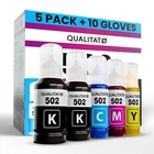 For Epson 502 Ink Refill Bottles 5 Bottle Kit (2-Black, Cyan, Magenta, Yellow) This QUALITAT Epson 502 Ink Bottles 5 Pack is the perfect choice for those who want to refill their inkjet printer with high-quality ink. The pack includes 5 BOTTLES of CYAN, YELLOW, MAGENTA, and 2-BLACK inks, which are compatible with Epson printers.The ink is designed to produce high-quality prints with vibrant colors and sharp texts.5 PAIRS of GLOVES included because High Quality Ink is hard to clean.You also get a branded STORAGE BOX so your left over ink doesn't wind up spilling in your drawers This QUALITAT Epson 502 Ink Bottles 5 Pack is the perfect choice for those who want to refill their inkjet printer with high-quality ink. The pack includes 5 BOTTLES of CYAN , YELLOW , MAGENTA , and 2-BLACK inks, which are compatible with Epson printers. The ink is designed to produce high-quality prints with vibrant colors and sharp texts . 5 PAIRS of GLOVES included because High Quality Ink is hard to clean. You also get a branded STORAGE BOX so your left over ink doesn't wind up spilling in your drawers eBay integration by