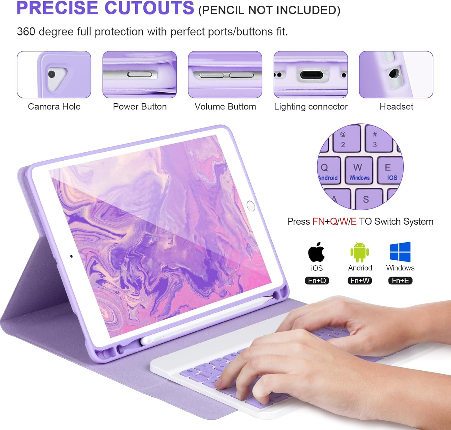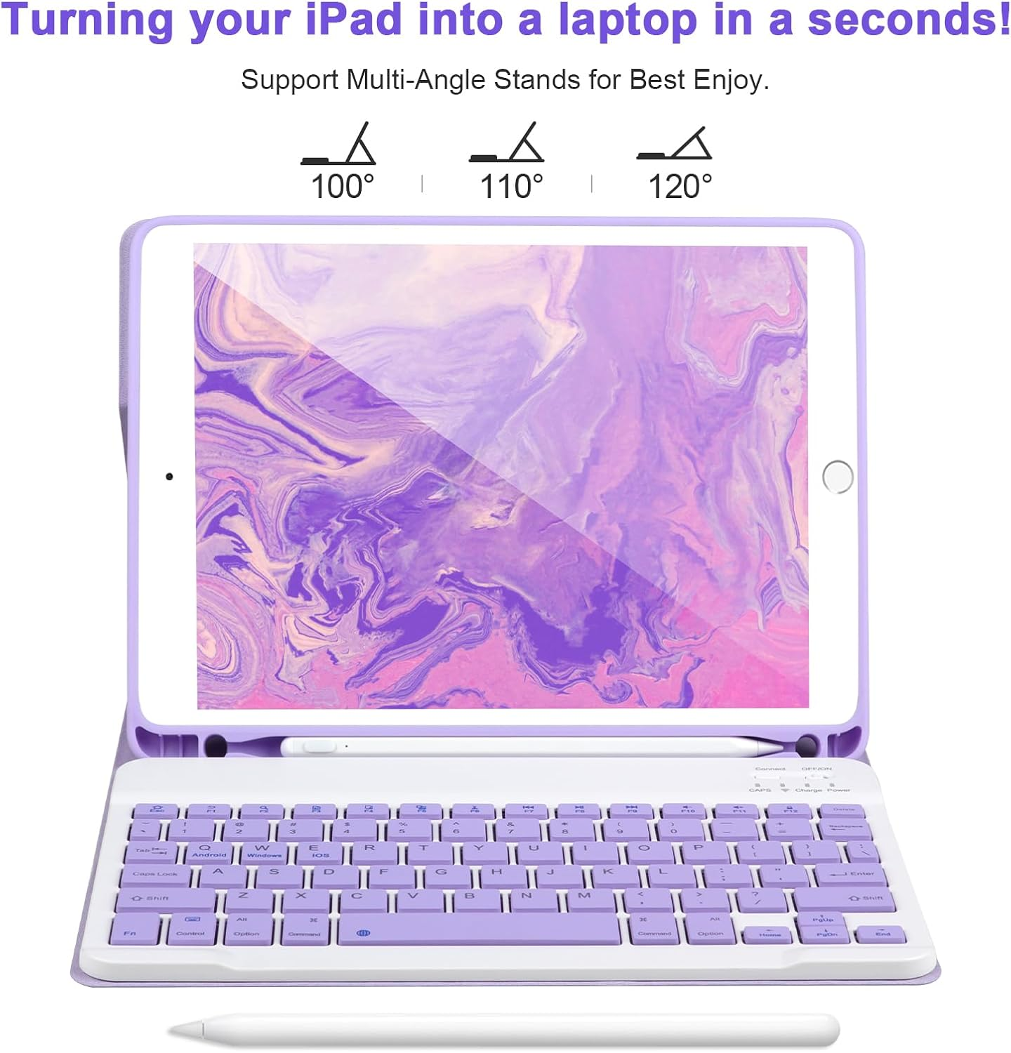 【Case with Keyboard iPad 9.7 inch】This iPad keyboard case 9.7 inch is designed for new iPad 2018 6th gen(Model:A1893/A1954) 2017 iPad 5th gen,(Model:A1822/A1823) iPad Pro 9.7 (Model:A1675/A1674/A1673),iPad Air2 (Model:A1566-A1567),iPad Air 1(Model:A1474/A1475)Please check the model number before purchasing. 【Powerful Battery &Built-in Pencil Holder】Built-in Strong battery with energy-saving mode,it only takes 2-3 hours to fully charge,work at least 80 hours and stand by for 30+ days.The inner layer of the case is padded with a honeycomb grid,which releases 80% more heat than other iPad cases,preventing overheating to prolong the life of your iPad 6/5th Gen,iPad Air 2/1,iPad Pro 9.7'' Tablet.Built-in Apple Pencil holder,cap and adapter slot,grab your Apple Pencil for easy portability and use. 【Detachable Wireless Bluetooth Keyboard for iPad 9.7 inch】After this keyboard is connected to your iPad 9/8/7th generation via Bluetooth once, it will automatically connect after subsequent use, turning your iPad into a laptop in seconds! It supports carrying around, which is convenient for entertainment and office. The scissor-style mechanical keyboard feels quiet and smooth, providing you with a comfortable typing experience. 【Magnetic Multiple Angles Stand iPad Keyboard Case 9.7’’】This iPad 6th generation case with keyboard adopts clamshell magnet detachment design, it can support three different angles of standing, providing a multi-functional experience: Typing ,reading,gaming.Easily adjust to the most comfortable angle for you.The secure magnetic closure allows you to take the keyboard and hard case with you wherever you go. 【Precise Cutouts&Fully Protection】The keyboard case iPad 9.7 inch for iPad 6th Gen features a non-slip design that provides full protection from fingerprints, impacts, scratches and dust. Prevent scratches, bumps or dents, and protect your iPad 9th generation from all kinds of drops. The ports on the hard case are precisely cut to allow access to all functions. Our keyboard cases provide you with a smart, stylish and functional solution. Product description STEPS TO CONNECT THE KEYBOARD VIA BLUETOOTH Step 1: Open the cover and turn on the keyboard Step 2: Turn on the Bluetooth of your iPad Step 3: Click Connect keys to open the Bluetooth of the keyboard Step 4: Go to your iPad bluetooth setting, click on bluetooth and look for Bluetooth Keyboard in the searching page, select it. Magnetic Wireless Bluetooth Keyboard The keyboard adopts magnetic adsorption, the wireless keyboard can be placed on the tablet case without easily falling off. It instantly turns your iPad into a laptop!The keyboard can be easily removed, supporting a working distance of 10m, enjoying entertainment and office work. Built-in Apple Pencil Holder This case has accurate cuts and is designed with an apple pencil holder, you can use your Apple Pencil whenever you want and it never get lost easily. (Apple pencil is not included). Typc-C Charging Cable The packaging comes with a USB-C charging data cable, which only requires 2-3 hours of charging and can work continuously for 150 hours, with a standby time of over 60 days, providing you with ultra long battery life for entertainment and office.A Type-C charging cable is included.