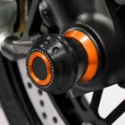 Front Wheel: For KTM 990 Super Duke (2004-2011) For KTM 990 Super Duke R (2007-2013) For KTM 950 Supermoto (2005-2007) For KTM 950 Supermoto R (2007-2008) For KTM 990 Supermoto (2008-2009) For KTM 990 Supermoto R (2009-2013) For KTM 990 Supermoto T (2009-2013) ▲ Foreword: When the motorcycle rolls over unexpectedly, it is likely to cause damage to the front and rear axle, which will require a lot of cost to replace and repair. The slider protector can effectively protect the front and rear axle of the motorcycle, enhance the durability of the front and rear axle of the motorcycle, and increase the life of the front axle. To protect the front and rear wheels, and reduce damage to the front and rear wheels when the motorcycle falls to the ground. ▲ Item Specifics: -Condition: 100% Brand New, High Quality -Material: POM+Aluminum -Production process: Steel die casting -Position: Front -Color: Black Orange -Quantity: 1 pcs -Easy to install, No Installation Instruction -100% brand new and high quality. -Material: Aluminum, which has good wear-resistance. -Function: Protects the axle of wheels, and decorate them. -Easily Install, and no Installation Instruction. ▲ Feature: -Laser printing Logo, not easy to fade. -The protection pads are easily fixed at either end fork through appropriate passing steel bar. -Designed to help eliminate damage to the front axle during a drop,a skidding stop or a low side. -Products can be installed and use without modification, easy to install, no installation instructions. -Anodizing, not easy to fade and will not rust. -The appearance of the fashion design, excellent technology is more suitable for your bike. ▲NOTE: -Due to the shooting process, there will be a certain chromatic aberration. If you have any questions, you can contact us to get real pictures of the objects. -The picture is for reference only, and the actual item shall prevail.