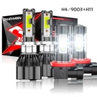H4/9003 (High/Low Beam) + H11/H8/H9 (fog light) LED Headlights: Plug Type: H4/9003(High/ Low Beam) Power:240W/set LED Quantity(each bulb): 2pcs* COB Chips Luminous Flux: 11000lm/set Operating Voltage: DC 9-32V(fit 12V,24V vehicles) Color Temperature: White 6000K Surface Finish: Virtually Unbreakable PMMA Lens IP67 rated water and dust seal,360 degree beam angle Material: Aviation 6063 aluminum profile Operating Temperature: -40-80 degree Celsius Over 50000 hours life time Usage: High + Low Beam Headlight Combo LED Fog Light Bulbs: Type:H11/H8/H9 (Fog Light) Featured here is a pair (2 pieces) of our H11/H8/H9 360 Degrees shine 16-COB LED Light Bulbs. Each H11/H8/H9 LED Light bulb contains 18 pieces of High Quality, Super Bright, Long Lasting 16-Chip 5050 SMD LED Chips. A great advantage of LED lights is that it has an average of 50000+ hours lifespan and it consumes less power as well. 360 Degree Shine Plug & Play NO ERROR CODES!! 16-COB -SMD LED ( Xenon White ) 50,000+ Hours Lifespan Cleaner Look Once the stock halogen daytime running lights are switched out to LED, high beams will turn on but will not be as bright as stock halogen bulbs ! Feature: (4pcs/set)H4+H11 COB LED headlight conversion kit Super bright COB chip,360 degree clear beam no blind zone Engineering beam pattern design throw light on road evenly at appropriate angle without foggy light Xenon white light reflect road paint/signs better to show clearer road situation All-in-one heat conduction+high speed mute fan system keep the light bulb in appropriate working temperature Built-in constant current CPU,instant full brightness without start-up relay Two-way heat dissipation chiannel 1.All-in-one aluminum profile as heat conduction system,360 degree heat radiating 2.High speed mute fan(12000R/Min),high Air flow for faster cooling rate Package Included: 2x H4/9003 LED High/ Low light bulb 2x H11 LED Fog Light bulb