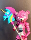 Fortnite fans will love this Cuddle Team Leader Pink Bear action figure from Epic Games. Standing at 7 inches tall, this posable toy features intricate details and vibrant colors, making it a must-have for any collector. Made of high-quality plastic, this officially licensed figurine is a perfect addition to any Fortnite or animation merchandise collection. Get ready to bring a piece of the popular franchise into your home with this adorable Cuddle Team Leader action figure.