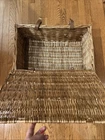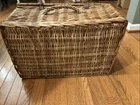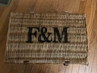 This Fortnum & Mason Wicker Basket is a vintage-style picnic gift hamper with leather straps and a handle for easy carrying. It is ideal for storage, picnics, or even as a decorative laundry basket. Made of wicker material with a classic design, it measures 20 inches in width, 13 inches in depth, and 9 inches in height. Handcrafted in the United Kingdom, this basket exudes a touch of elegance and functionality, perfect for outdoor dining or stylish home organization. Will be sent in original Fortnum and Mason Shipping box