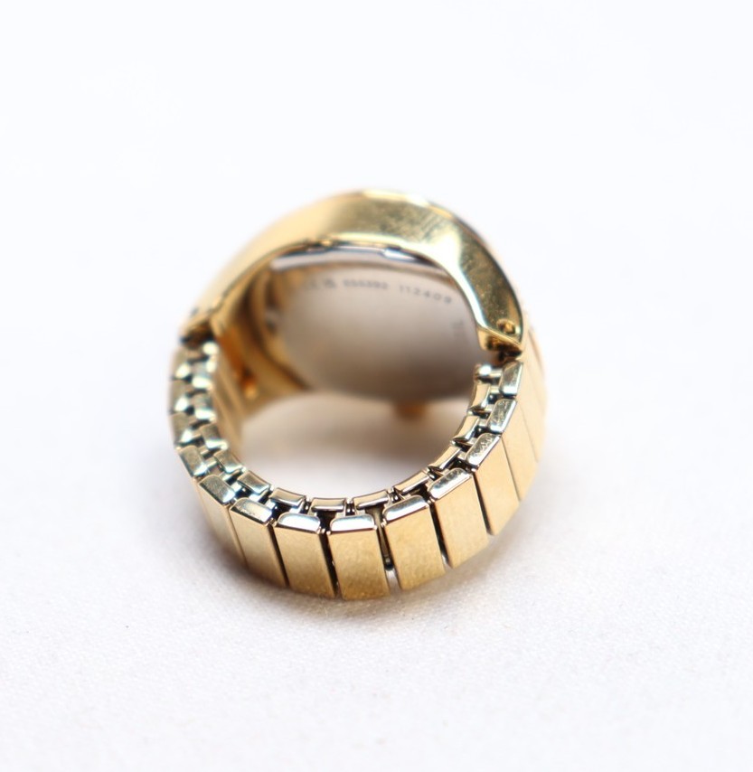 You are bidding on a Fossil ES5392 Gold Tone Stainless Crystal Watch Ring $195. The item is in very good condition. It is in working / ticking condition. The ring is expandable. It retails for $195. Features: Case Diameter 15mm Band Width 6mm Quartz Movement Water Resistant to 50M