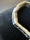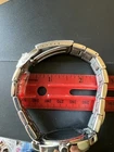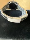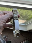 This watch still has plastic and protective paper and appears to have never been worn . Inside diameter is about 2.5 inches maybe a little more. The watch is not running and needs a new battery.