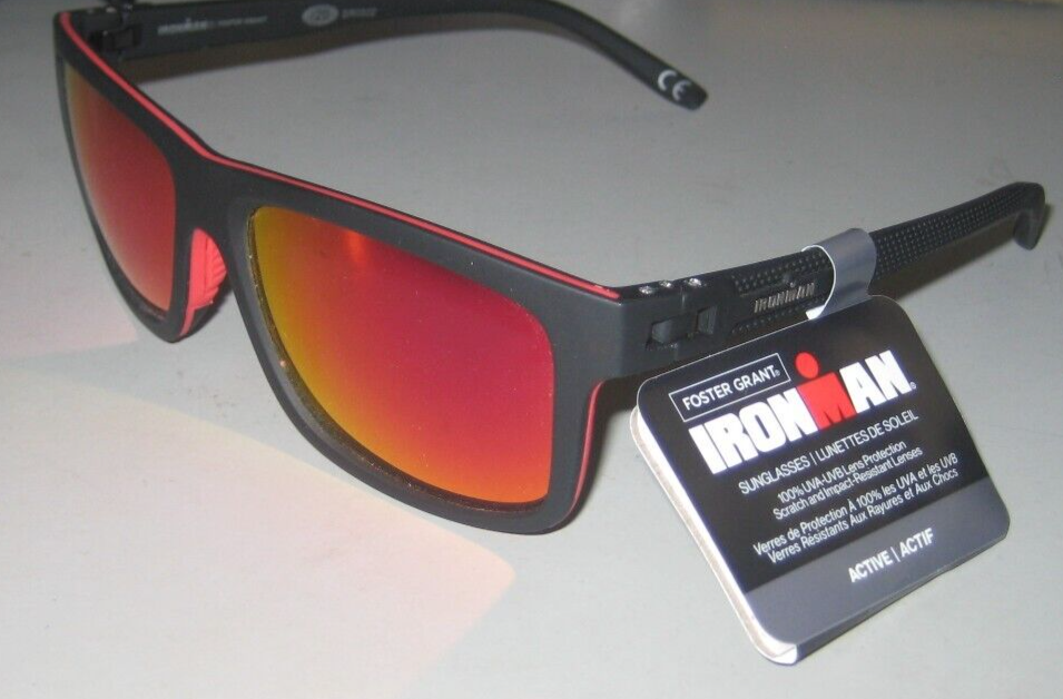 IronMan Ironflex IF 2005 BLK MIR Sunglasses by Foster Grant. Black Plastic Square Frame with Red Detail. Black Red Mirrored Scratch and Impact-Resistant Lenses. 100% UVA / UVB Protection. New with tag, these usually retail for $29.00. Shipped in soft black microfiber drawstring pouch, that can be used as a lens cleaning cloth. Shipping is fast and free. Please ask any questions that you many have before you purchase.