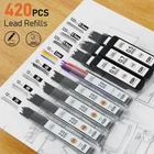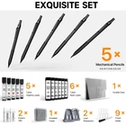 A metal mechanical pencil set that contains a variety of accessories. The pencils are available in 4 models: 0.5, 0.7, 0.9 and 2.0 mm. There are also various types of lead cores, as well as accessories such as erasers and lead sharpeners. With this set of products, you can do whatever you want. Choose the tools you need to write and draw freely. [Advanced Pencil Set] Includes 5 full body metal mechanical pencils, 4 models (0.5mm, 0.7mm, 0.9mm & 2pcs 2.0mm) and 6 tubes of 0.5, 0.7, 0.9mm resin leads, 5 tubes of 2.0mm graphite leads , 2pcs lead sharpeners, 2pcs 4B-soft erasers, 1 kneaded eraser, 1 tube eraser refills (9pcs / tube) [More Leads, Multiple Models & Hardness] The drawing pencil set includes 420PCS lead refills. Each variant of 0.5mm, 0.7mm, and 0.9mm resin leads comes in 2 tubes (60 pcs/tube), offering a smooth and sturdy writing experience, ideal for drafting with varied line thicknesses. The 2.0mm graphite leads are available in 5 tubes (4B, 2B, HB, 2H, and one tube of colored leads, 12 pcs/tube), perfect for sketching with different hardness in the art work. [High-Quality Metal Pencil] The all-metal body design provides an ideal weight balance for fatigue-free writing and drawing, and the metal threaded pencil grip enhances friction to prevent slipping during use. The internal metal spring and brass three-claw design provide a buffering effect on the lead core, greatly reducing the possibility of lead sticking and slipping. [Functional Design] The caps for the 0.5mm, 0.7mm, and 0.9mm drafting pencils come equipped with eraser refills, ensuring accurate erasure of handwriting. The caps of the 2.0mm sketching pencil feature a lead sharpener design, allowing you to sharpen the pencil lead at any time. [Ideal Drawing Pencil] An art mechanical pencil set specially designed for artists, teachers and students. Great for writing, drafting, drawing, sketching. If you have any questions, please contact us in time, we will give you a satisfactory answer within 24 hours.