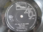 Artist: Four Tops Title: It's All In The Game Format: 7" Label & Cat No: Tamla Motown TMG736 Grading: EX Year: 1970 Additional info: It's All In The Game/Love Is The Answer *********************************************************************************** • thespacebar.records have been selling vinyl online for over 20 years. • We don't use stock photos. What you see is what you get. If we have multiple copies we'll send the best one. • If there are any issues when we come to pack up your record we will message to let you know and wait for you to confirm or cancel prior to shipping. • Much of our stock is in near-perfect condition. • Many items are unplayed but are graded conservatively as EX. • We're in the process of adding more photos to our listings. It's a big job. In the meantime if you'd like to see more images of any item, please send a message and we'll fast-track it. • We grade the vinyl 1st and the sleeve (if applicable) 2nd. • If there is only one grading and it seems very cheap, please check the item description carefully as we sell some records without sleeves and some sleeves without records. We always check with buyers before posting these items. • Singles that don't have a picture sleeve are supplied in an original company sleeve where possible. Otherwise they are sent in a plain white sleeve. • Records are supplied with a 400g polythene sleeve for protection. • To prevent seam splits, records are removed from their original sleeves for posting. • Everything is pressed in the UK unless otherwise stated in the item description. • More information/track listings/photographs available on request. Enjoy browsing our shop - Jeff & Catherine