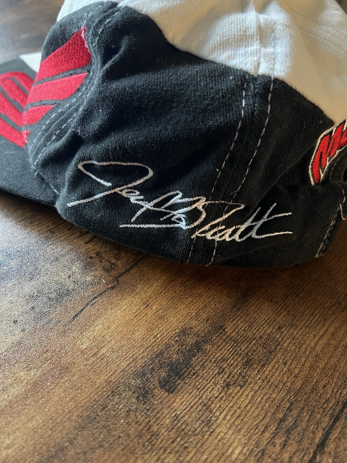 DISCOLORING IN PICTURES HAT IS NOT PERFECT BUT STILL REALLY AWESOME! The Fox Racing Honda Snapback Hat is a vintage 90s piece featuring the iconic Jeremy McGrath MX Motocross design. Made of black cotton canvas material, this adjustable snapback is perfect for casual occasions in the summer and spring seasons. The timeless solid pattern and Fox brand make it a stylish addition to any man's wardrobe. A must-have for any retro enthusiast looking to add a touch of nostalgia to their outfit.