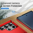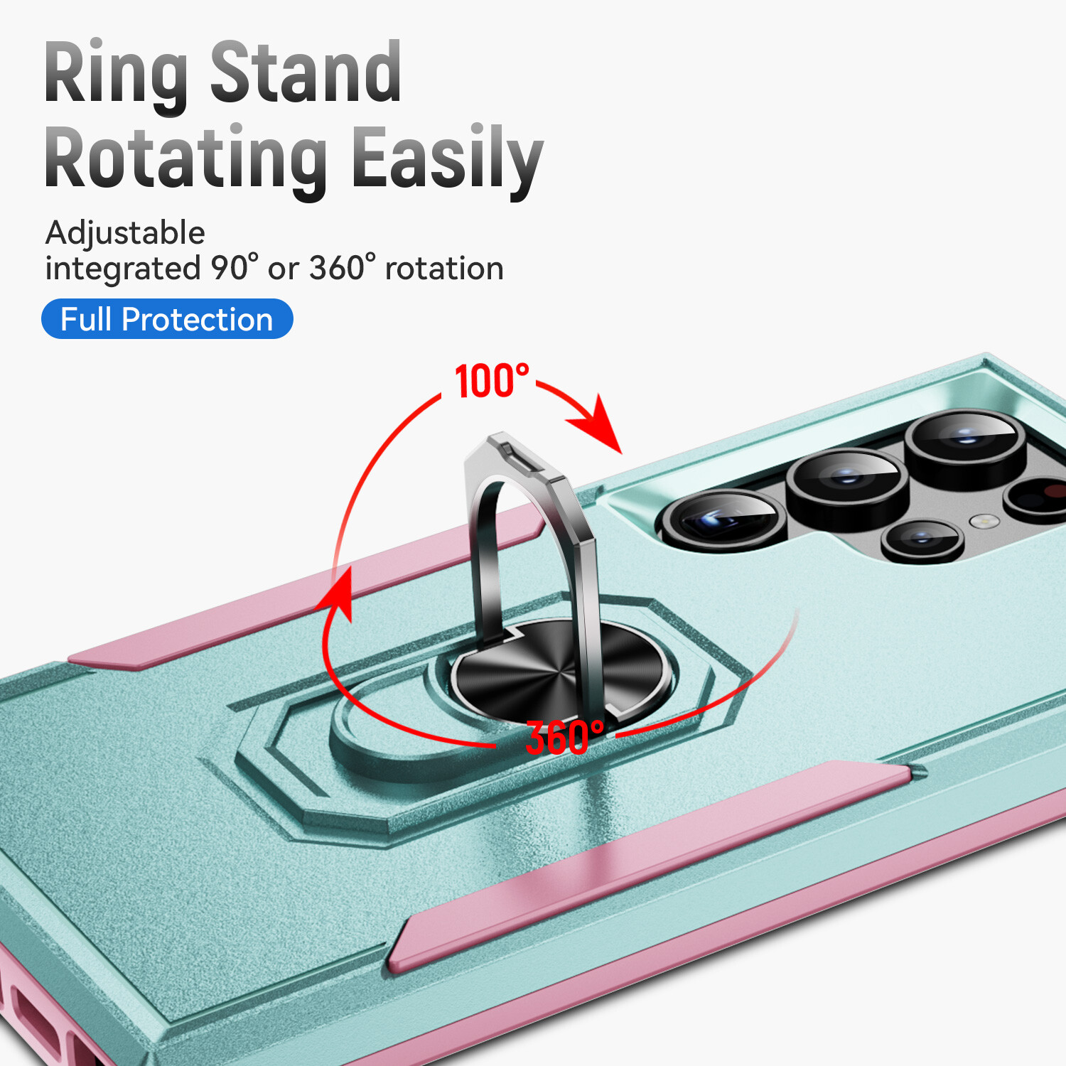 Fr Samsung Galaxy S25 Ultra S24 FE S23 Magnetic Ring Stand Case Screen Protector Key Features: 360° Rotating Magnetic Kickstand – Features a durable metal ring stand for hands-free video calls, streaming, or browsing, compatible with magnetic car mounts for added convenience. Shockproof & Durable Protection – Crafted with high-quality materials to guard your phone against drops, impacts, and scratches, ensuring long-lasting reliability. Precise Fit & Functionality – Designed with exact cutouts for buttons, ports, and the camera, offering seamless usability without removing the case. Lightweight & Comfortable Grip – Slim yet protective, this case provides a secure, ergonomic grip while maintaining your phone's sleek profile. Package: 1* Case Cover (Phone Is not included!) 1* Screen Protector