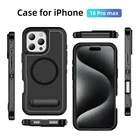 Fr iPhone 16 Pro Max 15 14 13 11 Mag Safe Case Built-in Stand + Screen Protector Key Features: Military-Grade Drop Protection: Advanced shockproof technology on all four corners and a 3-ply cushioning TPU bumper provide superior protection.Raised bezels around the screen and camera offer extra defense against dust and scratches. Enhanced Magnetic Compatibility: Compatible with Mag Safe accessories including Magnetic wallets, Car Mounts, etc, this case aligns perfectly with Magnetic chargers for a secure connection and faster wireless charging. Built-in Hidden Kickstand: The phone case is built in a hidden stand, which can hold your phone up vertically or horizontally as you wish to release your hands. Whether you're watching TV shows or video-chatting, this case with stand offers the perfect viewing angle based on ergonomic considerations to ensure optimal viewing comfort. Package: 1* Case Cover (Phone Is not included!) 1* Screen Protector