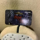 Freddy Krueger & Jason Vorhees 9" plush pet toys, new with tags, Fetch for Pets Not sure what the thinking is behind these, but to make these as pet toys and not as plush for humans is just insane to me. Jason is the only one that squeaks when you press his belly. Would have been better if Jason was carrying a machete, but they are adorable nonetheless. They are approximately 9" long, 6" wide, and 3.5" thick. Slight damage to the back of the Freddy doll's tag, but nothing major. Find it hilarious that they are labeled as 17+ as a pet toy. Please make sure your pet is age 17 or older before purchasing.