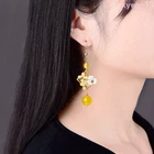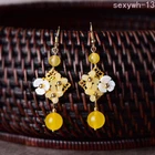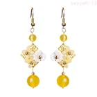 Fresh Exquisite Yellow Coloured Glaze Flower Pendant Earring Retro Fashion