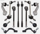 Front & Rear Suspension Sway Bar Links, Tie Rods & Ball Joint Kit 12p for Jaguar includes Control Arm Kit with bushings. It is suitable for various placements on the vehicle - upper, lower, left, front, and right. The kit consists of parts with Interchange Part Numbers XR81693, C2D49529, C2C18572, XR81692, C2D49528, XR825750, C2D5104, and Manufacturer Part Numbers XR81693, C2D49529, C2C18572, XR81692, C2D49528, XR825750, C2D5104.