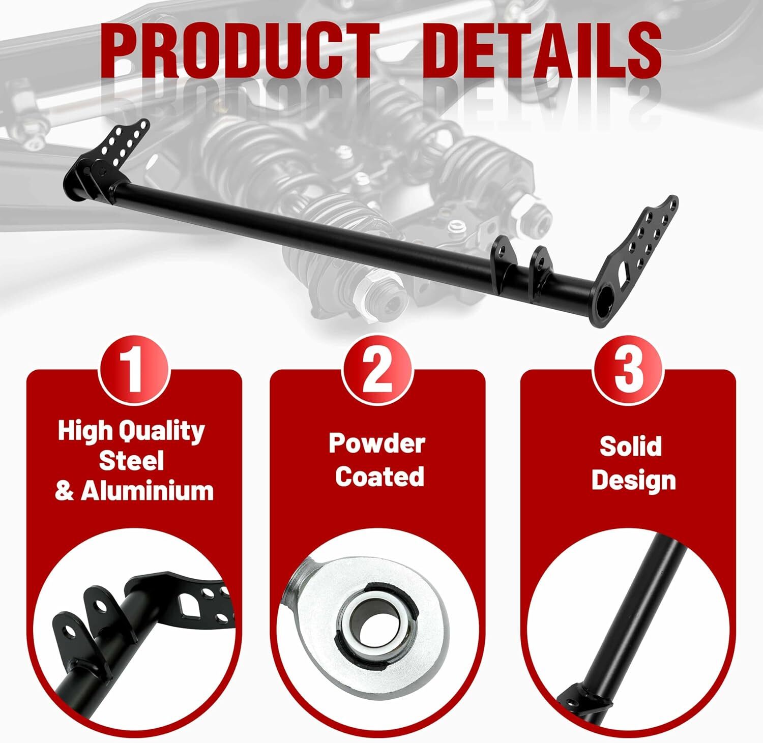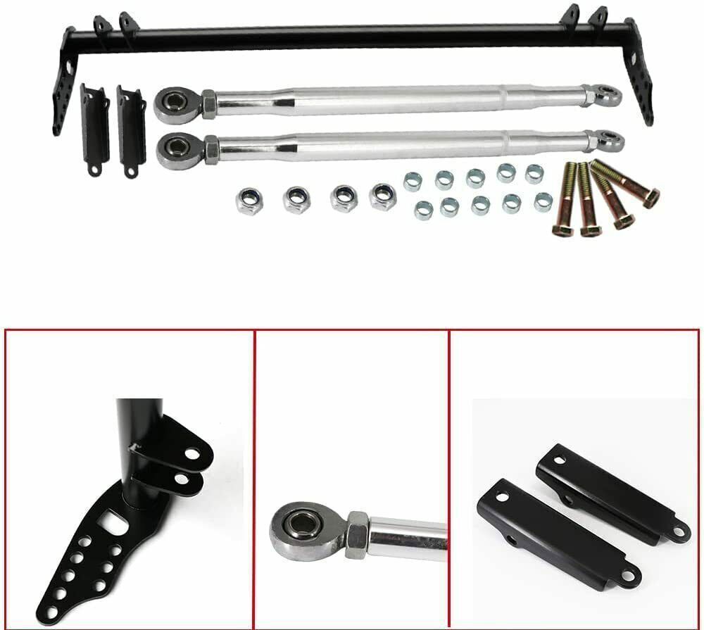 Front Traction Control Tie Bar Kit Fit for Honda Civic 92-95 Acura Integra 94-01 🚗 Suspension Traction Control Tie Bar Arm Kit – For Honda & Acura Models 🚗 🚙 Fitment Designed for front suspension enhancement in: Honda Civic 5th Gen (EG, EH, EJ1/2) : 1992–1995 Honda Civic 6th Gen (EK3/4/5/9, EJ6/7/8/9, EM1) : 1996–2000 Honda Del Sol : 1993–1997 Acura Integra (DC) : 1994–2001 Verify your vehicle’s year and model before purchase for a precise fit. ✨ Key Features Premium Construction : Made from T-304 lightweight stainless steel with a powder-coated black finish, ensuring high strength, corrosion resistance, and long-lasting durability. Enhanced Suspension Rigidity : Reduces unnecessary movement in the front suspension, improving stability during acceleration, cornering, and bumpy terrain. Prevents spring twist under stress. 360° Adjustable Angle : Allows flexible rotation to adapt to varying driving conditions, ensuring optimal traction and handling. Improved Traction : Stiffens the front suspension after installation, increasing ground traction and overall driving efficiency. 📦 Package Includes 1 x Cross Bar 2 x Tie Bars 2 x Brackets 1 x Accessory Pack (hardware for installation) 🛠️ Installation Steps Remove the old crossmember and both front tow hooks. Mount the traction bar without the radius arms. Install radius arms, bolting the front to the bar first. Loosen the heim nuts, adjust length until holes align with the front lower control arm (ensure equal thread count on both sides for balance). Tighten all bolts and secure heim nuts. 🛡️ Warranty & Support 90-Day Warranty : Covers defects in materials and workmanship. Customer Service : Contact us first with issues (fitment, defects) for prompt resolution. We prioritize satisfaction and will work to find solutions before negative feedback. Shipping : Dispatched from CA or NJ based on your location for faster delivery. Upgrade your suspension’s stability and traction with this durable tie bar kit—order today! 🔧