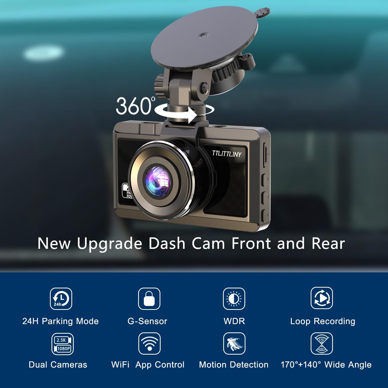 【2.5K+1080P Front and Rear Dash Cam】Our car camera dash cam front and rear which records video of up to Ultra HD 2.5K(2560*1440)+FHD 1080P resolutions. It helps you to read the key details like road signs, vehicle number plates etc. To reduce the blind areas it has the front wide angle of 170 degree and rear wide angle of 140 degree. This helps you during unexpected circumstances like collision to retain and present evidence. 【Build-in WiFi and APP Control】This delicate car camera dash cam front and rear comes with APP for Android or iOS smartphones to get a live stream, download videos, change settings, edit and share your footage simple. By just one-click you can share your travel scenery and wonderful moments with your friends and family or share to the social media platform according to your preference. 【Super Night Vision and 256GB Max Support】The front and rear dash camera equipped with advanced F/1.8 aperture, exposure compensation and WDR (Wide Dynamic Range) help to achieves super night vision by automatically balancing the exposure in extreme dark scenarios, obtaining crystal-clear recording, even in bad weather such as night, rainy or snowy day. The dashcam is equipped with a reliable and efficient U3 64GB micro SD memory card. Supports up to 256GB micro SD cards. 【24 Hours Parking Mode】This dashcam will auto switch to parking mode while your car is parked. Collision detection can be triggered by impact or movement, time lapse recording mode keeps recording continuously with low power consumption and low frame rate. If your vehicle is involved in a hit while parked, or someone attempts to steal your vehicle, this dash cam will provide around-the-clock protection.Please note that this function would not work on if you not use a hardwire kit (not included). 【Loop Recording and Auto Accident Lock】 The dash cam recording time period can be set to 1, 3, and 5 mins. Loop recording will overwrite the oldest videos when the SD card is full and make sure the dash cam continuous recording. Built-in G-sensor, and the gravity sensor is divided into four modes: off, low, medium, and high.As soon as the G sensor detects a sudden collision, it locks and saves the collision video. Which can be used as accident evidence and safeguard car owner’s right. 【Worry-Free After Sales】Our greatest pursuit is to satisfy the needs of consumers. Our dashboard camera is backed by a full 1-YEAR . our after sales support or us, and we will respond within 24 hours and provide a satisfactory solution.