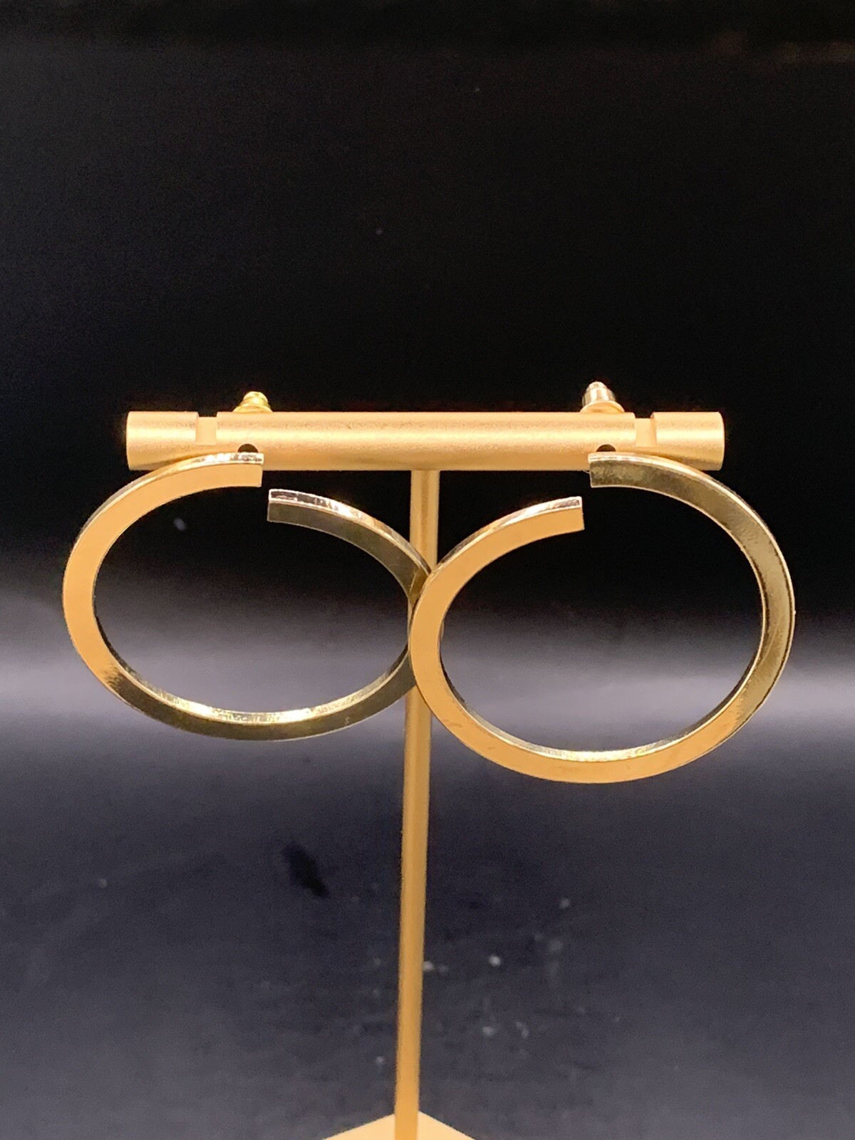 Gold plated front facing curved hoop earrings - dress up or down , chic or edgy Measurement 4cm diameter Nickel Lead & cadmium free also available in Silver To keep your jewellery in top condition, keep jewellery dry, be careful with fragrances, apply lotions before jewellery, store correctly and keep out direct sunlight - any further guidance please ask