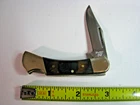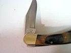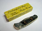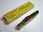 Frost Cutlery Two Pocket Knife Lot with boxes This lot contains two custom designed pocket knives from Frost Cutlery made around 2009 in Pakistan with Solingen steel. The Lil Blue Ridge Cougar 14-255 features a single lockback clip blade with frostwood scales, nickle bolsters, and brass pins and liners. The Little Copperhead 14-216 features two blades, a clip blade and pen blade with frostwood scales, nickle bolsters, and brass pins and liners. These knives are ideal for daily use or as part of a collection. Both knives are new old stock. Never carried, used, sharpened, or cleaned. No chips or cracks. Knives lock up tight with good snap. The boxes show a small amount of wear, but are generally in excellent shape. See photos for item condition before buying. Knives are factory sharp. Not responsible for personal injuries. All pictures are of the items being shipped. Color may vary slightly due to lighting conditions. All items are original and not remakes. Shipping included with purchase price.