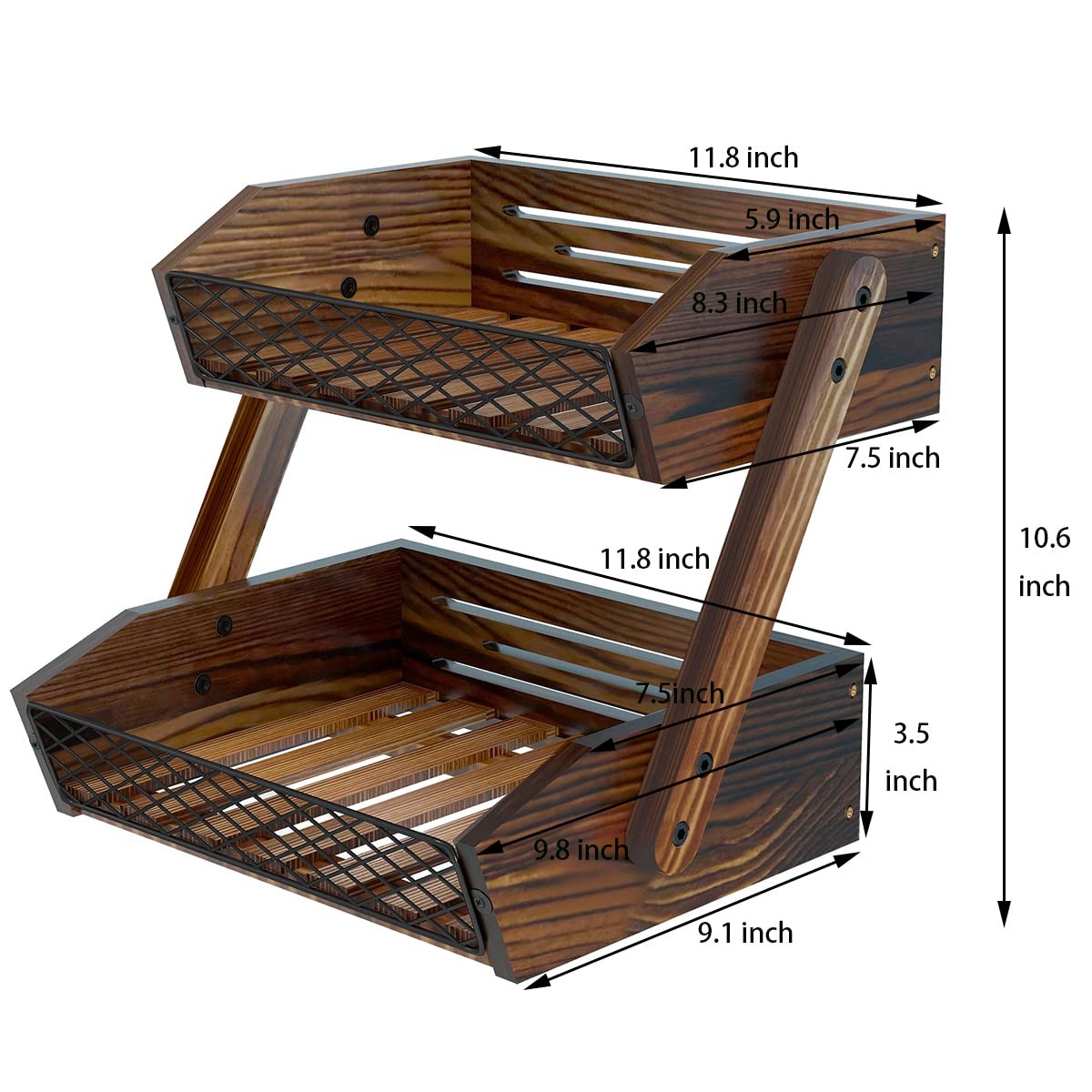 Fruit Basket for Kitchen, 2 Tier Fruit Bowl,Kitchen Counter Organizer,Wooden Vegetable Holder for Countertop,Bread Storage Basket Stand Versatile Fruit Rack:Mess?Thanks to the size of the fruit stand for countertop,it's easy to store fruits,vegetables,and bread and display them on your counter or on your desktop,keeping your kitchen tidy,meeting your needs,and keeping items within reach The Simple Design:The vegetable storage basket is made of metal mesh and wood grid, which allows air to flow fully and is suitable for keeping fruits and vegetables fresh Decorate Your Room:Say good bye to the cold metal,the rustic wood meets metal,vegetable rack finished,fit your home style Sturdy and Easy Assemble:Our tiered fruit basket is made of natural wood,upload to 50 LB.With attached installation instructions, say goodbye to installation troubles You Will Get:2 tier fruit basket is 11.8*9.8*10.6 inch,add new highlights to you home Lack of counter space in the kitchen?Mess? Open and close the cabinet frequently?It isn't at your fingertips? Are you puzzled by the above question. Our produce basket for kitchen can help you to solve these problems,expand your storage space. Fruit and vegetable are arranged in a clear hierarchy.They can easily handle the storage and bid farewell to the disorder. Product specification Color :Rustic Brown Size :11.8*9.8*10.6 inch Material :Solid Wood Shipping We offer FREE shipping on all orders! We ship within Three business days of payment, usually sooner. We use a selection of shipping services such as UPS, FedEx, USPS etc. We only ship to the lower 48 states, no APO/FPO addresses or PO Boxes allowed. Local pickups and combined shipping options are not provided at this time. International buyers – please note: Import duties, taxes, and charges aren't included in the item price or postage cost. These charges are the buyer's responsibility. Please check with your country's customs office to determine what these additional costs will be prior to bidding or buying. Order Cancellation Policy * Order Cancellation Policy ** You can return a product for up to 30 days from the date you purchased it. 1. The seller reserves the right to cancel the special case only due to eBay cancellation fee. 2. The decision of seller is the final. 3. The seller will respond to the cancellation request within 2 business days. Please wait for the result of cancellation. 4. In case the cancellation is not completed by some reasons, the buyer can follow the options below to get the refund. 4.1 The buyer can reject the item when it arrives. 4.2 The buyer can send the item back to the seller within 30 days If the buyer receives item (USA Shipment ONLY). The seller will provide the FREE return label to the buyer when the buyer opens " Return Item" case on eBay by using the reason as "Change my mind" ONLY. 5. When buyer has placed the order. The order will be processed and completed by automatic warehouse system within 5 minutes. In case that buyer sends the cancellation request after 5 minutes of placing the order, the request will be rejected. **Sending direct message to cancel the order is not allowed for every case.* Return Policy - If buyer would like to return the items for refund or replacement, please CONTACT SELLER to receive the free return label from seller. The refund or replacement will be processed with the tracking number of return label which is provided by seller only. The other ways of return which are not approved by seller will not be processed for the refund or replacement. Return You can return a product for up to 30 days from the date you purchased it. Any product you return must be in the same condition you received it and in the original packaging. Please keep the receipt. Payment We accept payment by any of the following methods: eBay Payments Please pay as soon as possible after winning an auction, as that will allow us to post your item to you sooner! Feedback Customer satisfaction is very important to us. If you have any problem with your order, please contact us and we will do our best to make you satisfied. Contact Us If you have any queries, please contact us via ebay. We usually respond within 24 hours on weekdays. Please visit our eBay store to check out other items for sale! Thank you for shopping at our store.