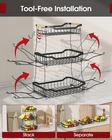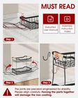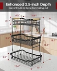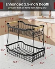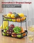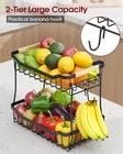 Fruit Basket for Kitchen Counter - 2 Tier Detachable Fruit Vegetable Basket with Banana Hanger, Metal Countertop Fruit Stand with Wooden Handle, Black, 8.5" D x 12.4" W x 12.3" H About this item REMOVABLE BANANA HANGER: This 2-tier fruit basket for kitchen offers ample space to store a wide variety of fruits. The attached large banana hanger keeps bananas hanging freely. It prevents bananas from bruising and allows for proper air circulation, which extends their freshness. EASY TO INSTALL & DETACH: The Sakugi vegetable basket for kitchen is designed for user convenience, requiring no tools for assembly. Its detachable design allows for easy cleaning and flexible use, enabling the tiers to be separated to accommodate various kitchen layouts or storage requirements. STURDY CONSTRUCTION: With a high-quality, thick metal and solid framework, this Sakugi fruit stand ensures strong support and stability even when fully loaded with fruits and vegetables. Besides, the wooden handle adds a stylish yet practical touch, allowing for easy movement of the basket. KEEP FRUITS IN EASY ACCESS: The smart U-shaped design enables quick and hassle-free access to your fruits. It facilitates efficient storage and retrieval of items, even those at the bottom. The fruit holder's maximum depth of 2.5 inches offers ample space to securely hold items while preventing them from rolling off. VERSATILE USE: The Sakugi produce basket is a versatile helper for organizing more than just fruits and vegetables. It is ideal for storing bread, snacks, spice bottles, toiletries, toys, tools, and more. Its compact design makes it a perfect addition to any kitchen, dining room, living room, or bathroom.