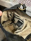 The Frye Campus Hobo Bag Shoulder Bag in Cognac is a designer women's accessory crafted from black leather with bronze and gold hardware accents. This medium-sized hobo bag features a classic striped pattern with a magnetic closure and a detachable black leather strap for added versatility. The interior is lined with a combination of polyester, cotton, and fabric in a beige color, providing a stylish and practical storage solution for everyday use. Ideal for fashion-forward women looking for a high-quality and trendy handbag with a touch of sophistication. Enjoy!